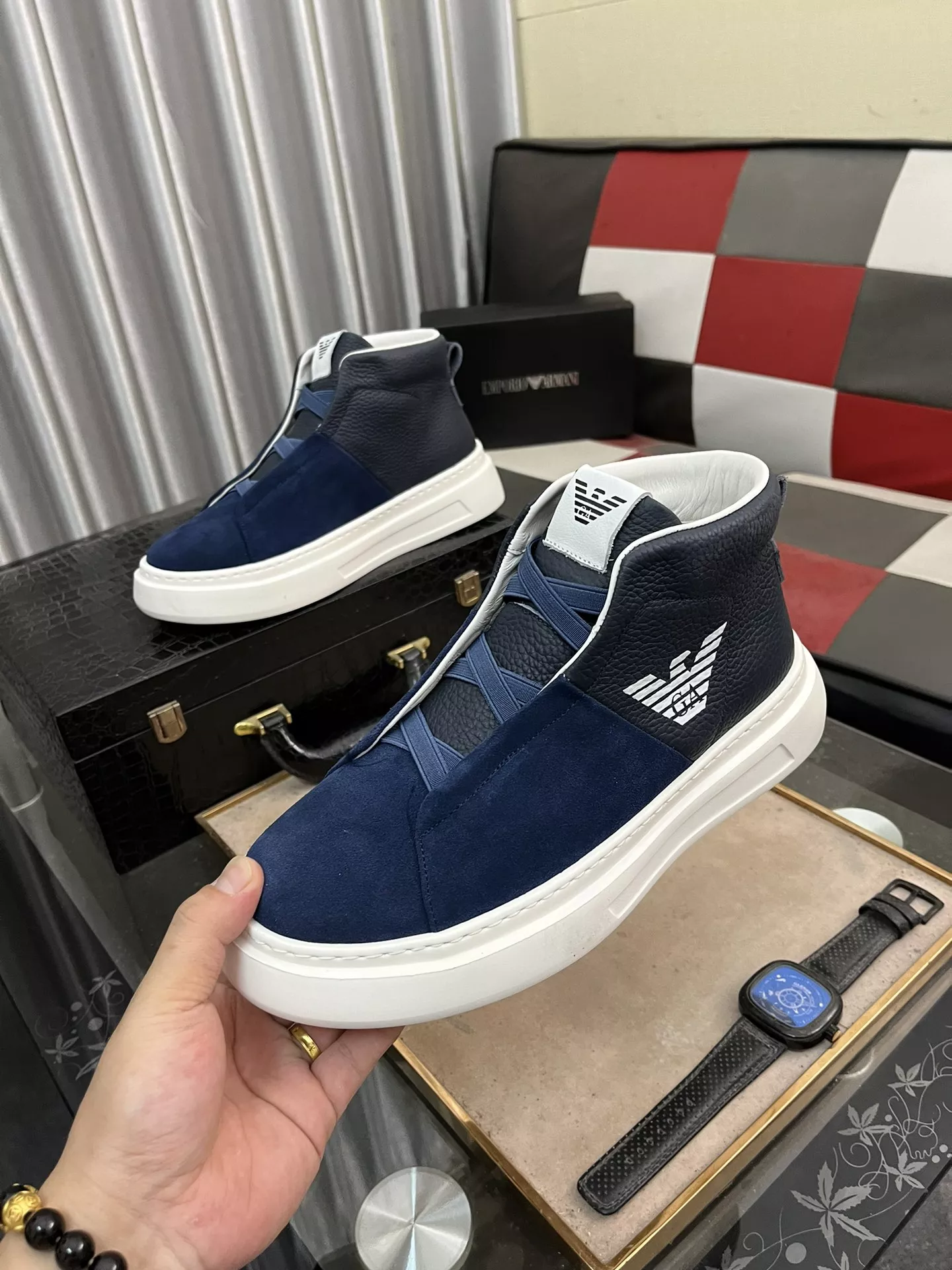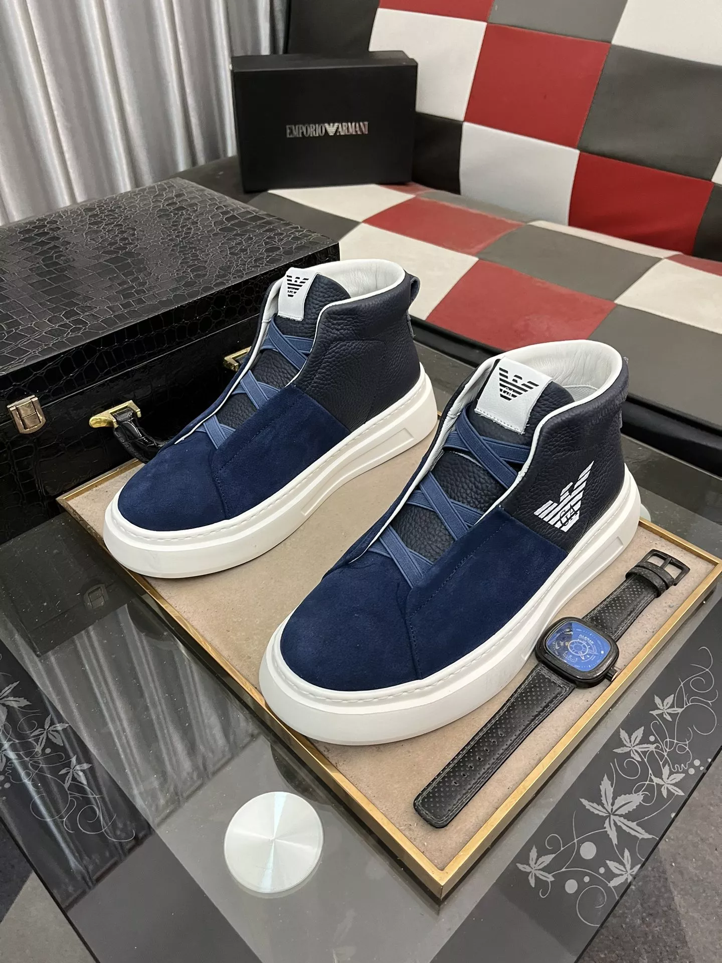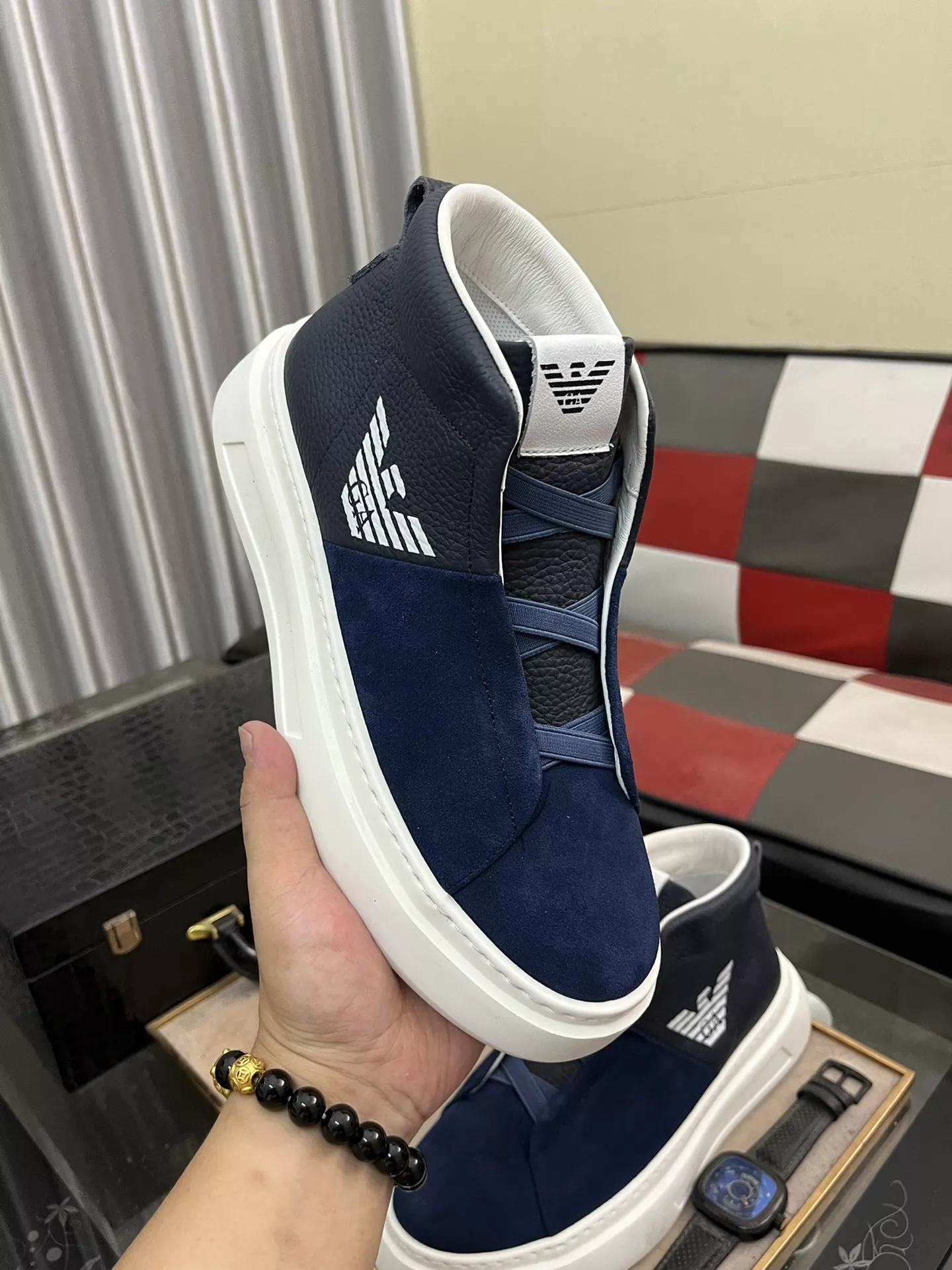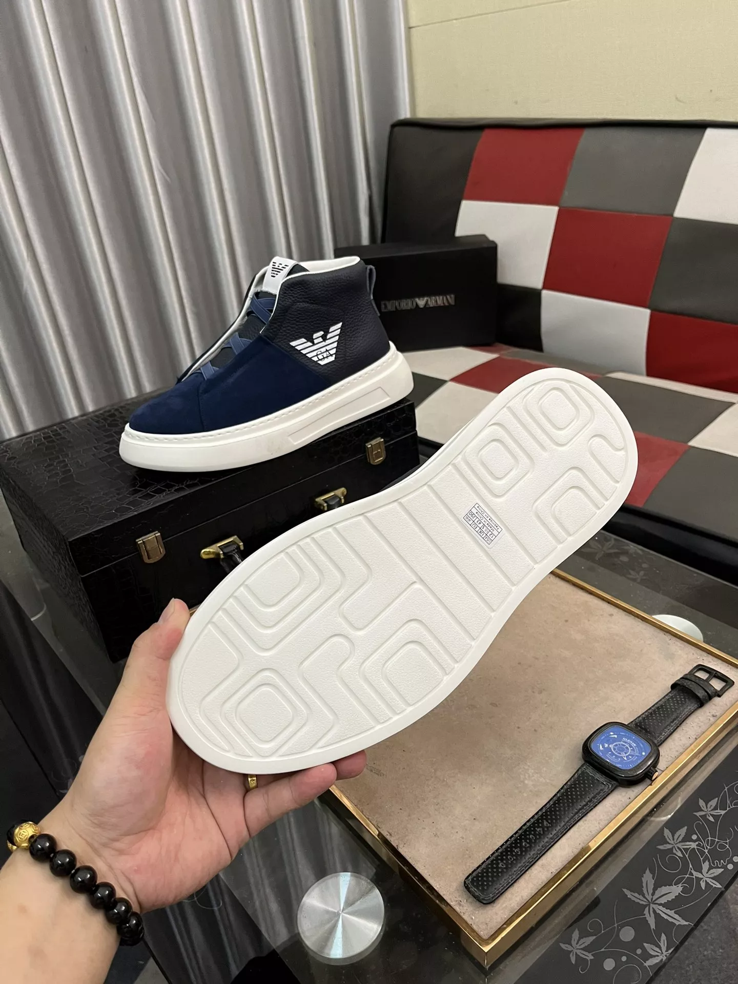 We also offer wholesale the best quality and cheap replica Armani High Tops Shoes items Gender MenSize US 4=EUR(38), US 5=EUR(39), US 6=EUR(40), US 7=EUR(41), US 8=EUR(42), US 9=EUR(43), US 10=EUR(44) online!