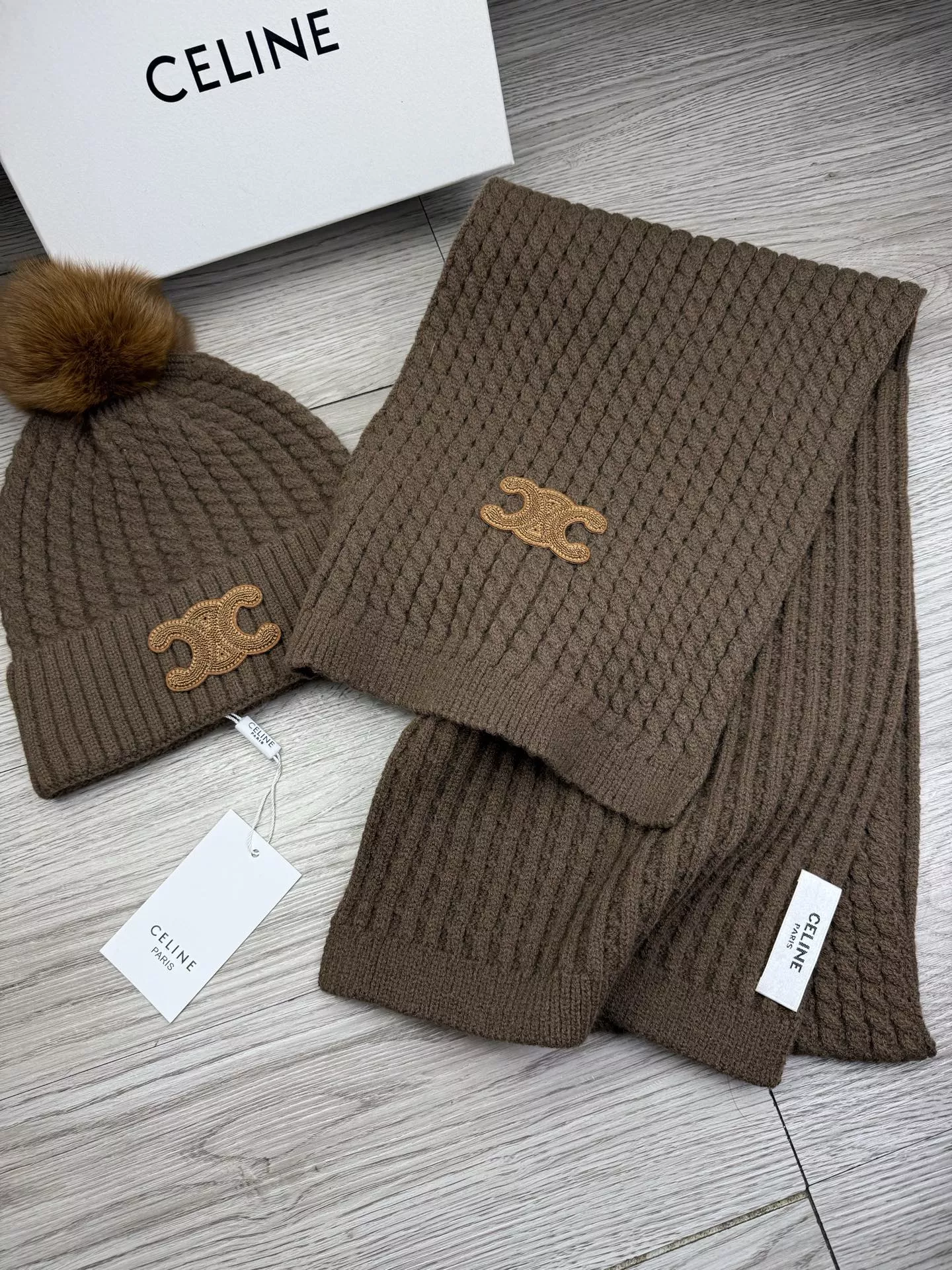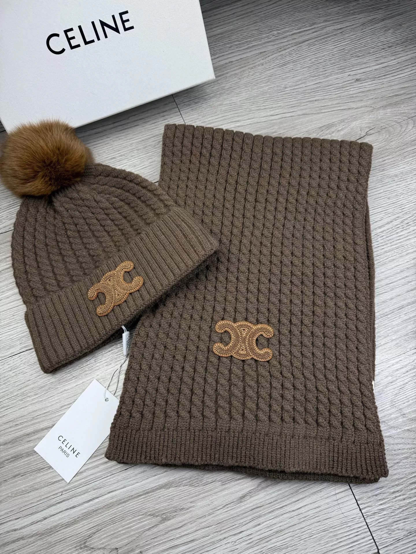These Celine Hat and Scarf and Glove Set are very easy to resell due to the low costand fast shipping. Wholesale new arrivals cheap quality fake Celine Hat and Scarf and Glove Set enjoy free shipping and more discount with best quality! The hot on sale style Celine Hat and Scarf Set #1378459.