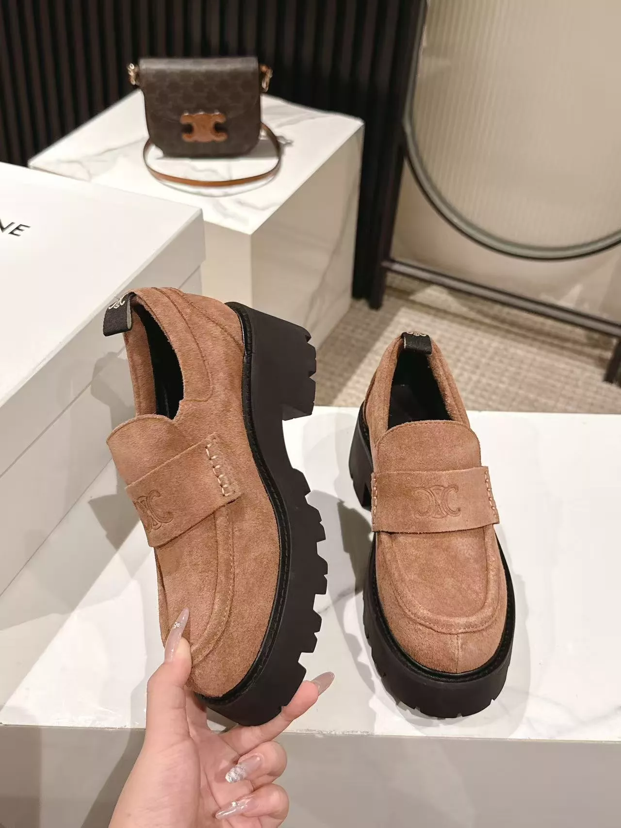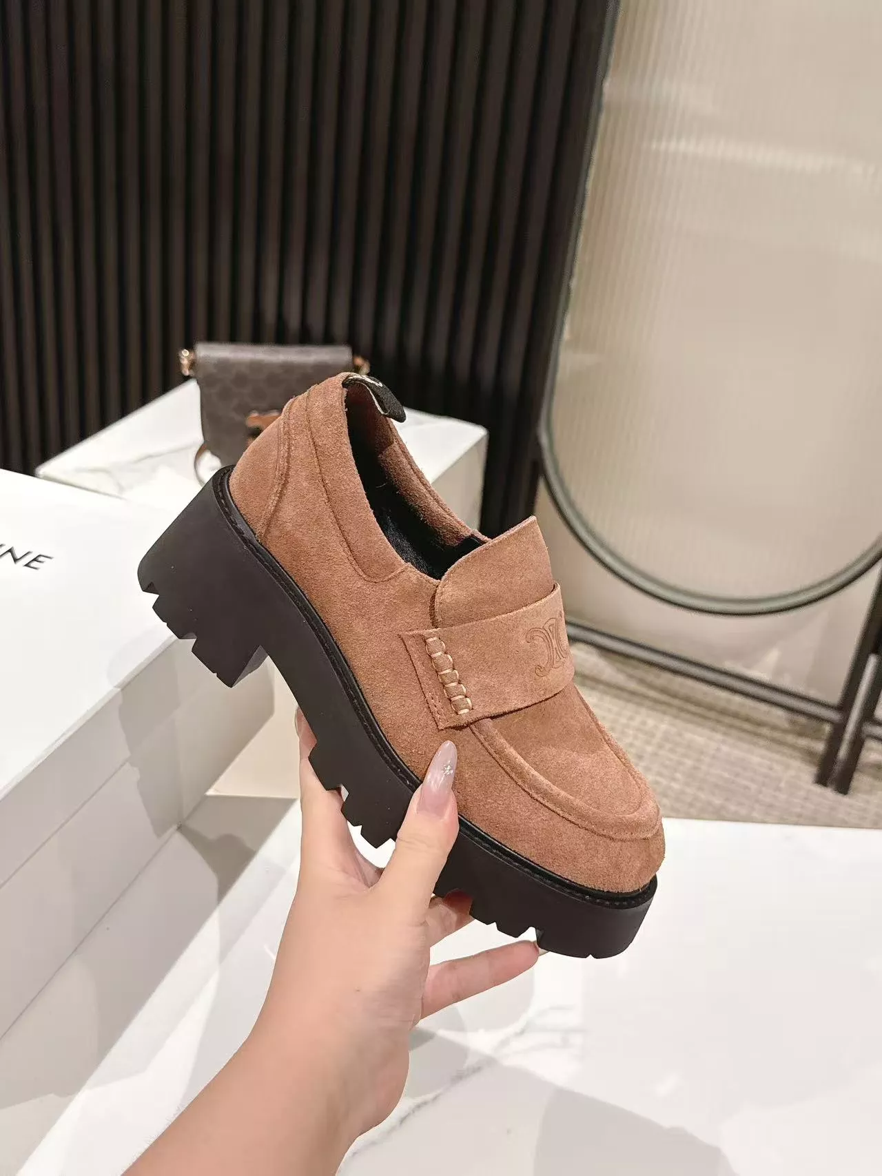 These Celine Leather Shoes are very easy to resell due to the low costand fast shipping. Wholesale new arrivals cheap quality fake Celine Leather Shoes enjoy free shipping and more discount with best quality! The hot on sale style Celine loafer For Women #1382233.