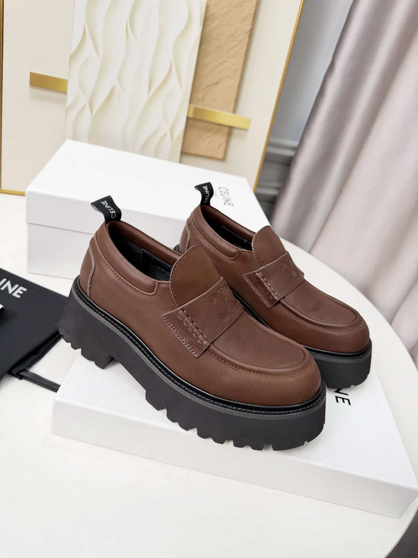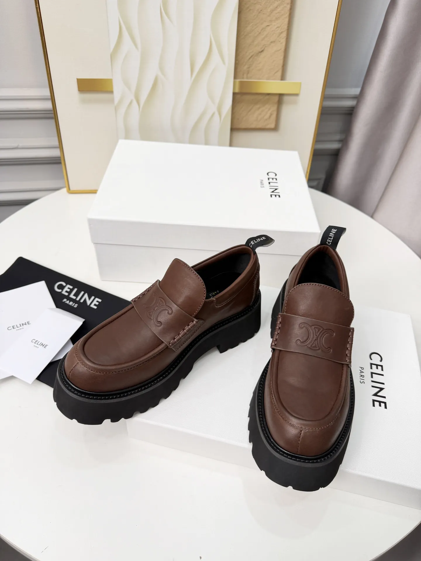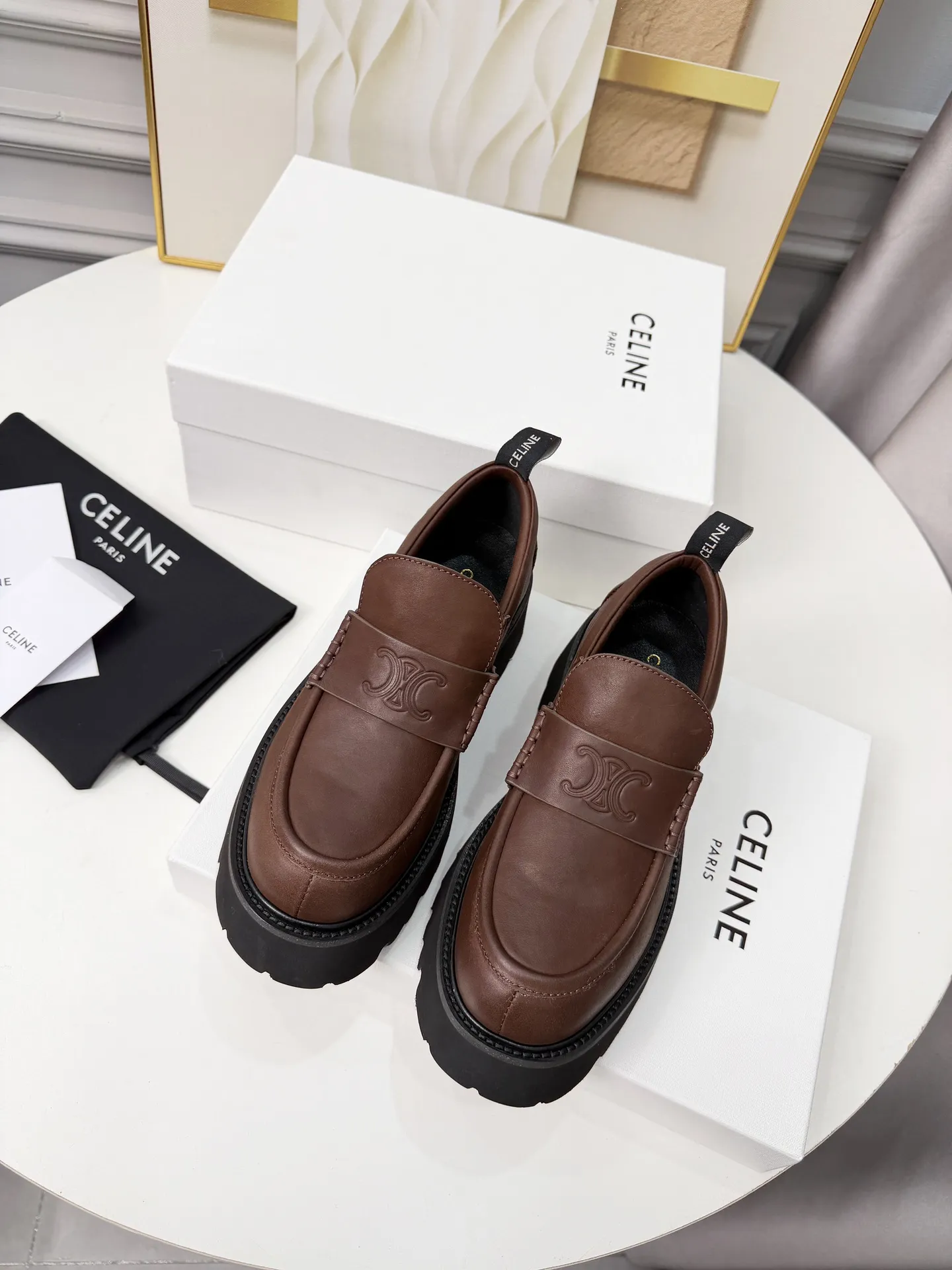 These Celine Leather Shoes are very easy to resell due to the low costand fast shipping. Wholesale new arrivals cheap quality fake Celine Leather Shoes enjoy free shipping and more discount with best quality! The hot on sale style Celine Loafer For Women #1431854.