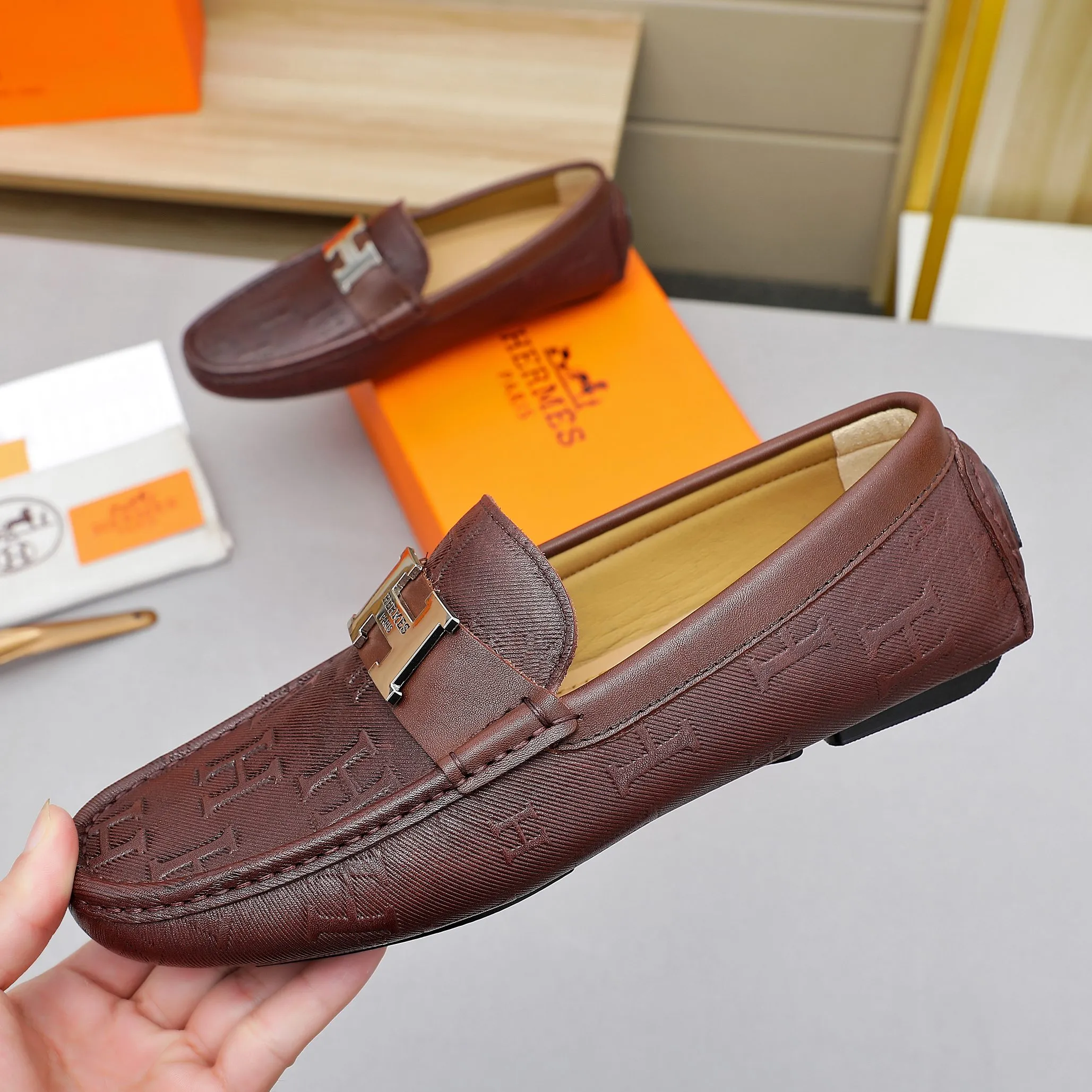 We also offer wholesale the best quality and cheap replica Hermes Leather Shoes items Gender MenSize US 4=EUR(38), US 5=EUR(39), US 6=EUR(40), US 7=EUR(41), US 8=EUR(42), US 9=EUR(43), US 10=EUR(44) online!