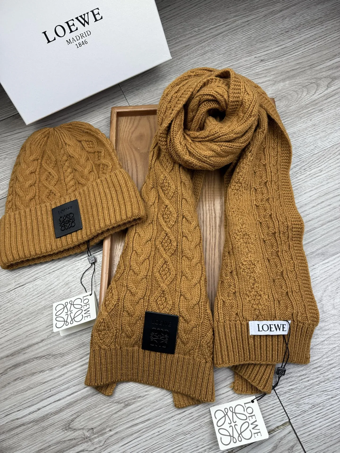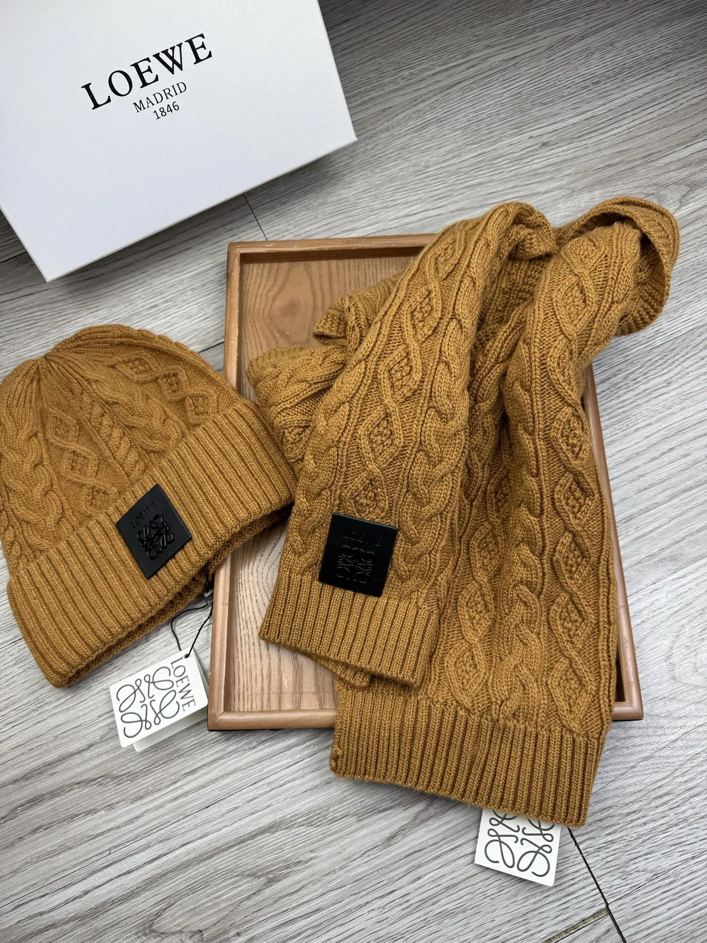 These LOEWE Hat and Scarf and Glove Set are very easy to resell due to the low costand fast shipping. Wholesale new arrivals cheap quality fake LOEWE Hat and Scarf and Glove Set enjoy free shipping and more discount with best quality! The hot on sale style LOEWE Hat and Scarf Set #1396465.