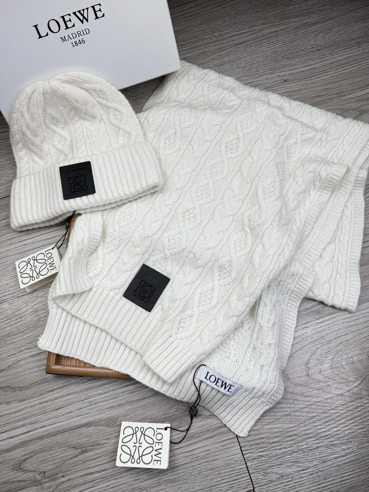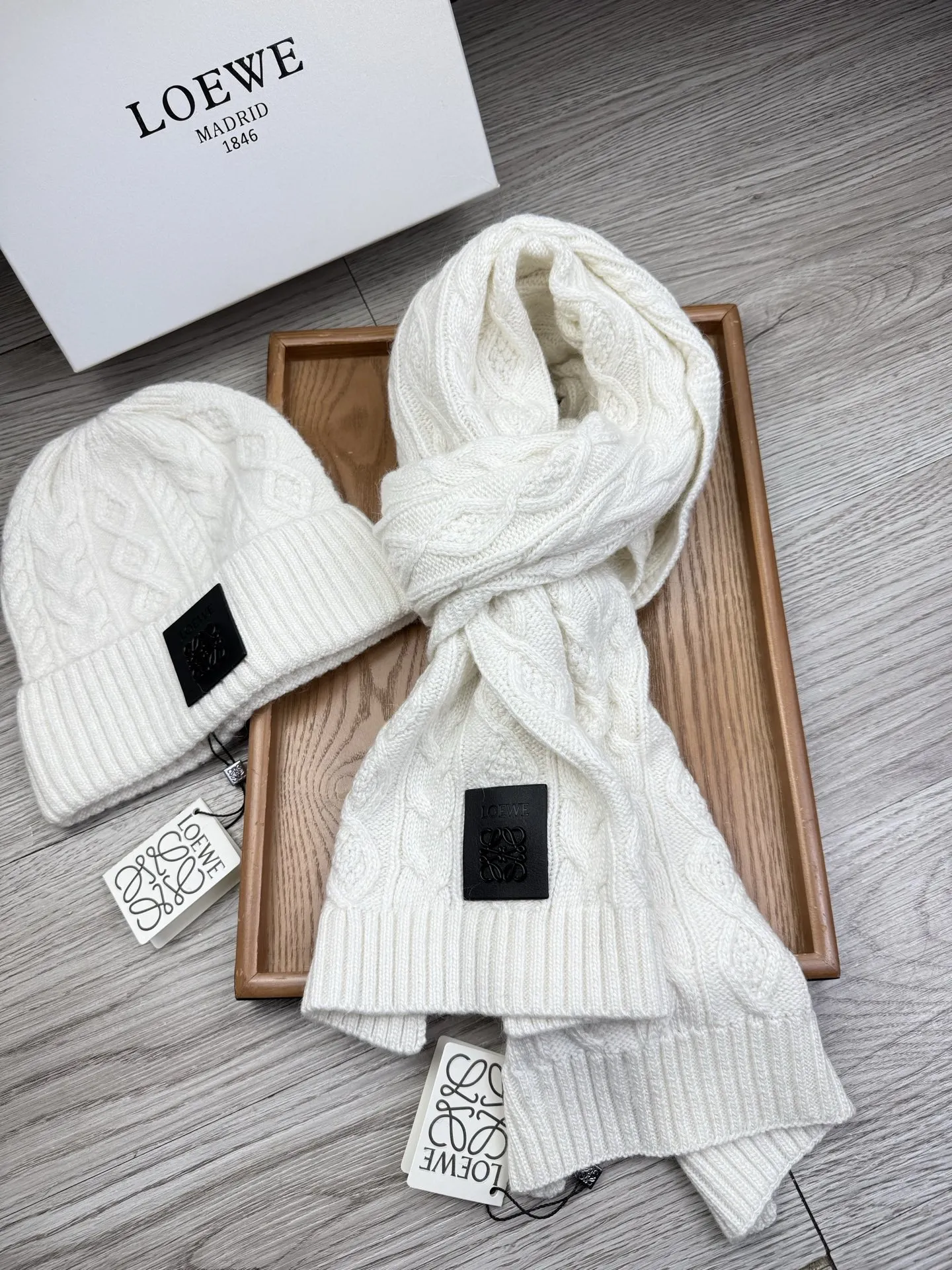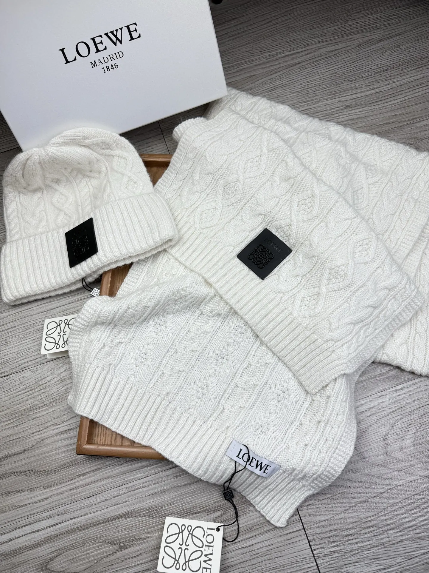 These LOEWE Hat and Scarf and Glove Set are very easy to resell due to the low costand fast shipping. Wholesale new arrivals cheap quality fake LOEWE Hat and Scarf and Glove Set enjoy free shipping and more discount with best quality! The hot on sale style LOEWE Hat and Scarf Set #1407593.