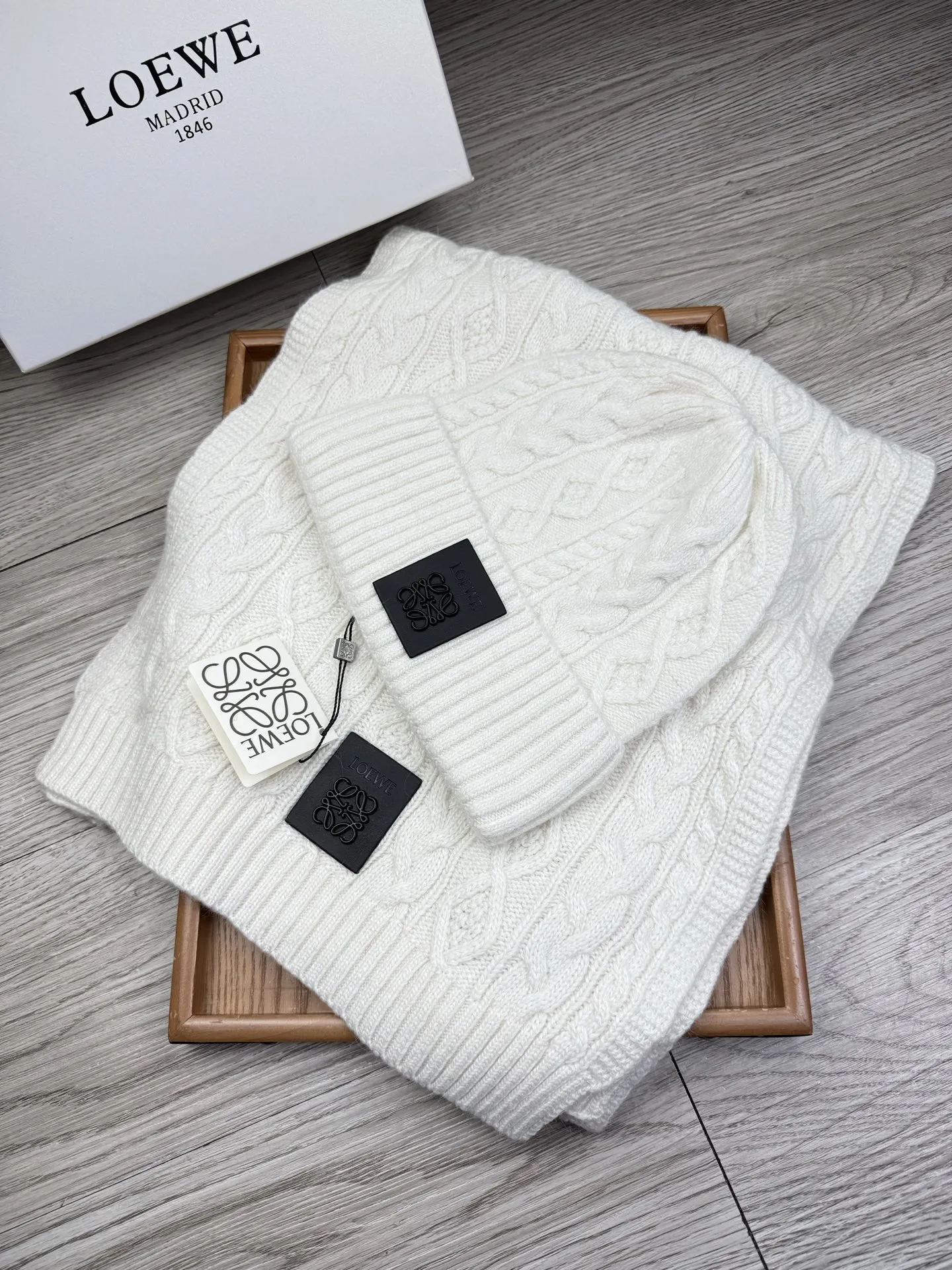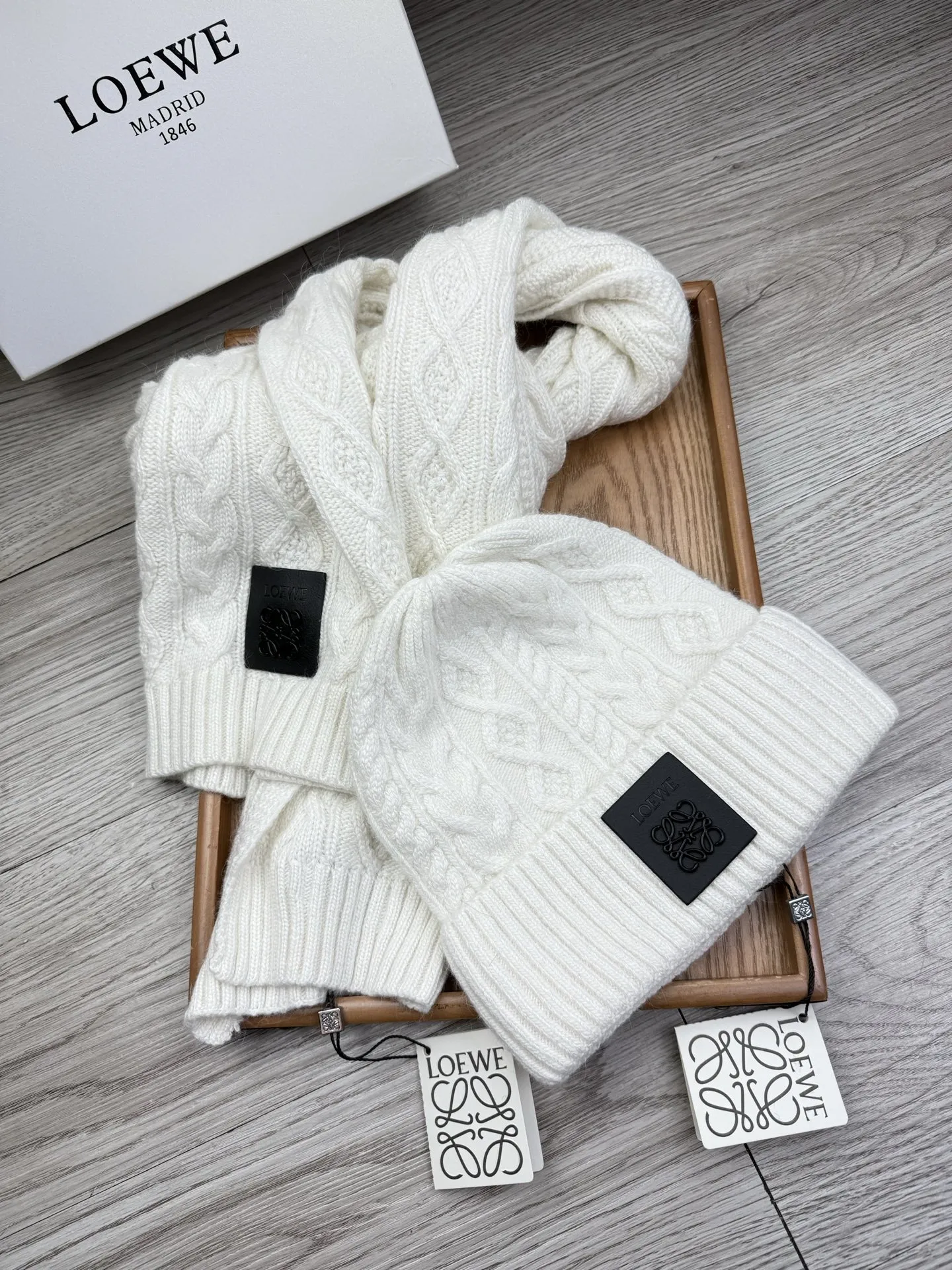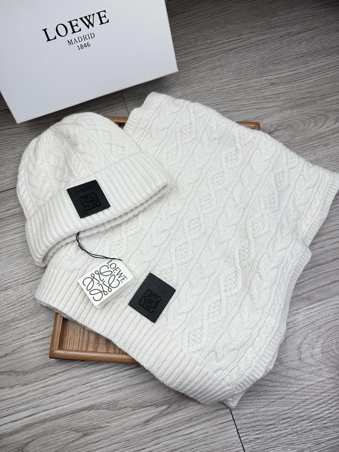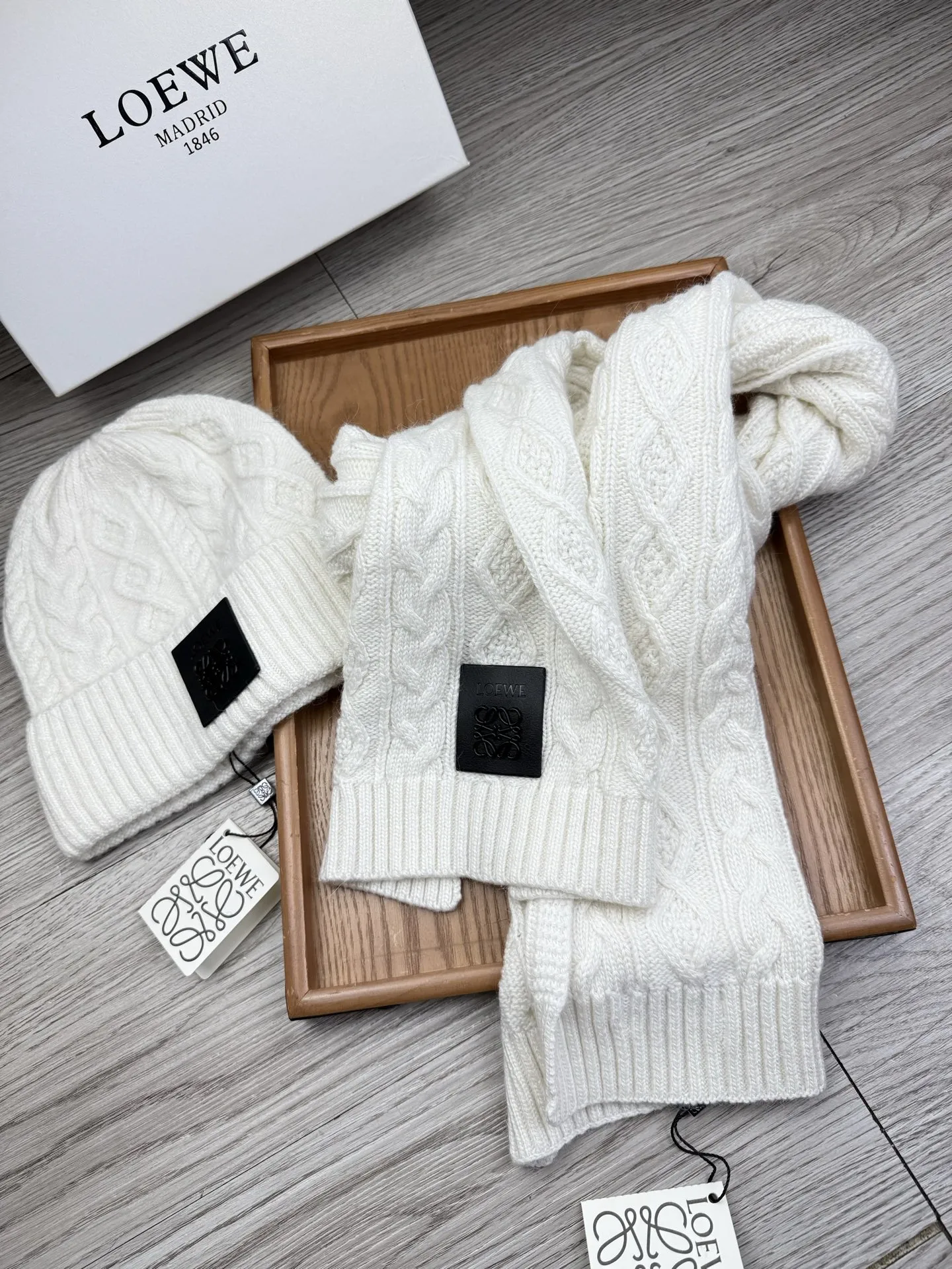 These LOEWE Hat and Scarf and Glove Set are very easy to resell due to the low costand fast shipping. Wholesale new arrivals cheap quality fake LOEWE Hat and Scarf and Glove Set enjoy free shipping and more discount with best quality! The hot on sale style LOEWE Hat and Scarf Set #1407593.