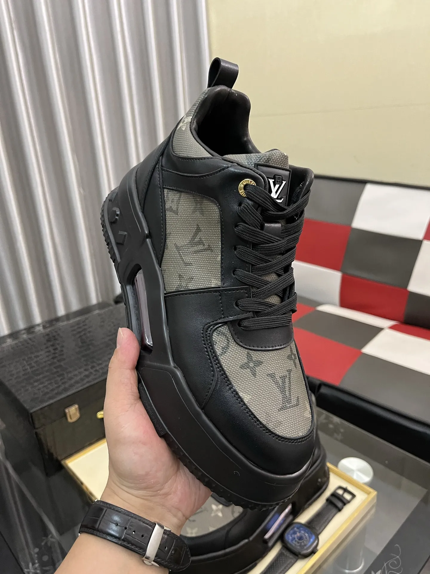 These Louis Vuitton High Tops Shoes are very easy to resell due to the low costand fast shipping. Wholesale new arrivals cheap quality fake Louis Vuitton High Tops Shoes enjoy free shipping and more discount with best quality! The hot on sale style Louis Vuitton High Tops Shoes For Men #1408235.