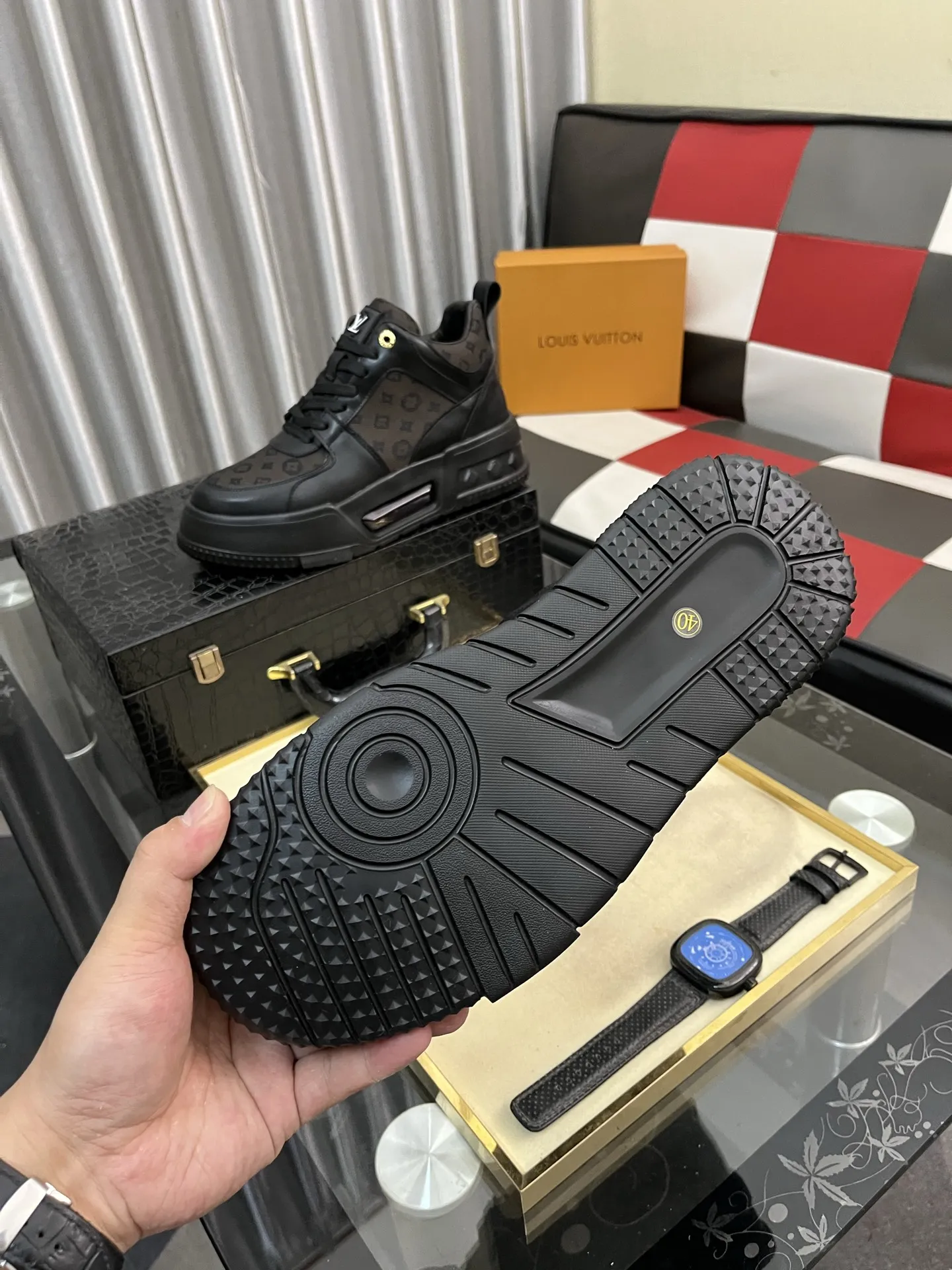 These Louis Vuitton High Tops Shoes are very easy to resell due to the low costand fast shipping. Wholesale new arrivals cheap quality fake Louis Vuitton High Tops Shoes enjoy free shipping and more discount with best quality! The hot on sale style Louis Vuitton High Tops Shoes For Men #1408238.