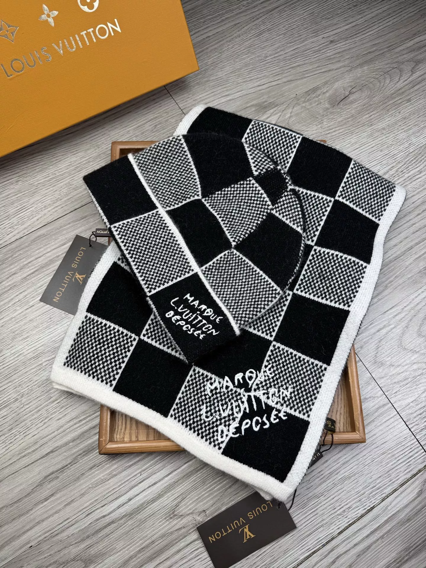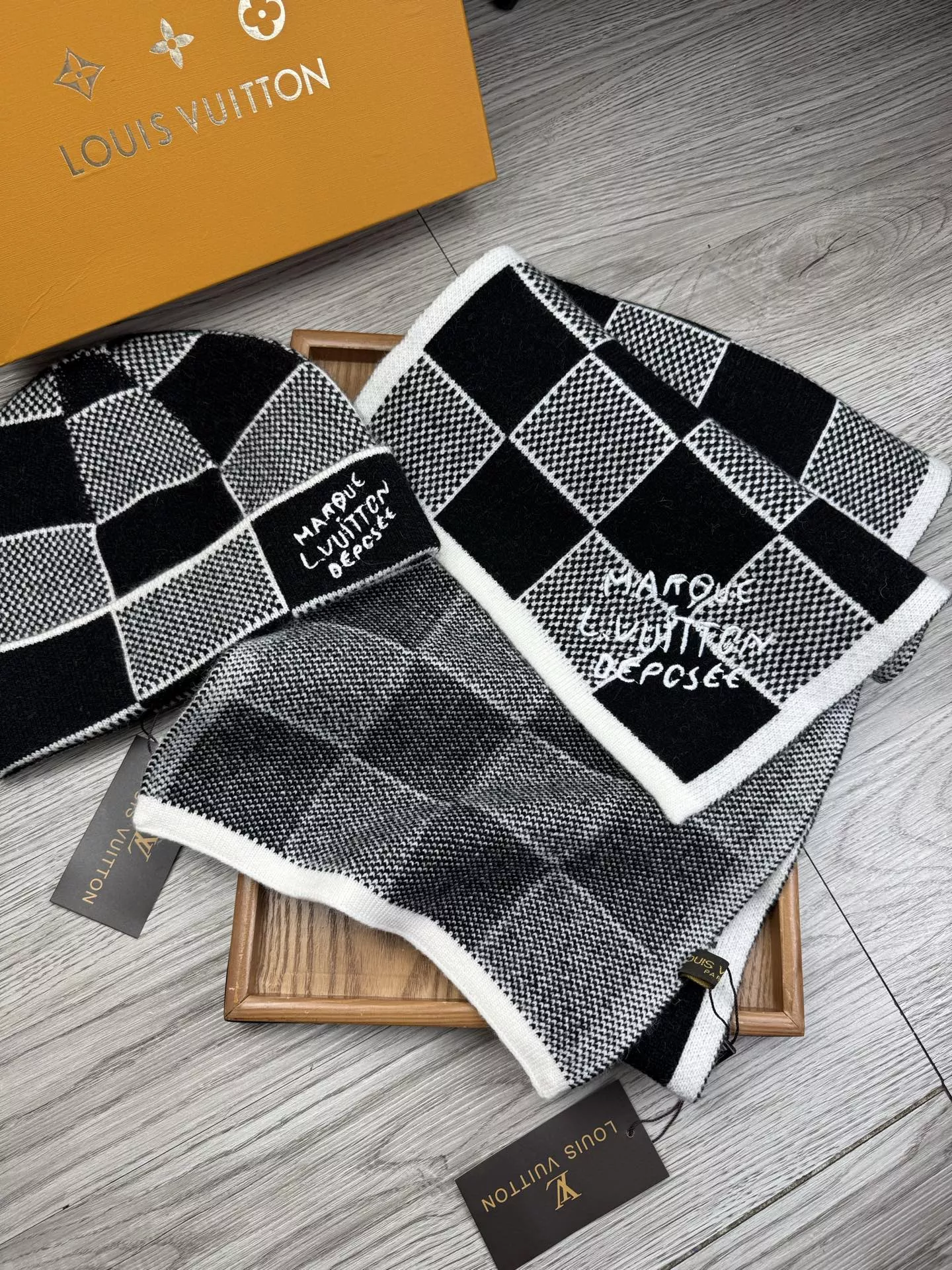 These Louis Vuitton LV Hat and Scarf and Glove Set are very easy to resell due to the low costand fast shipping. Wholesale new arrivals cheap quality fake Louis Vuitton LV Hat and Scarf and Glove Set enjoy free shipping and more discount with best quality! The hot on sale style Louis Vuitton LV Hat and Scarf Set #1372159.