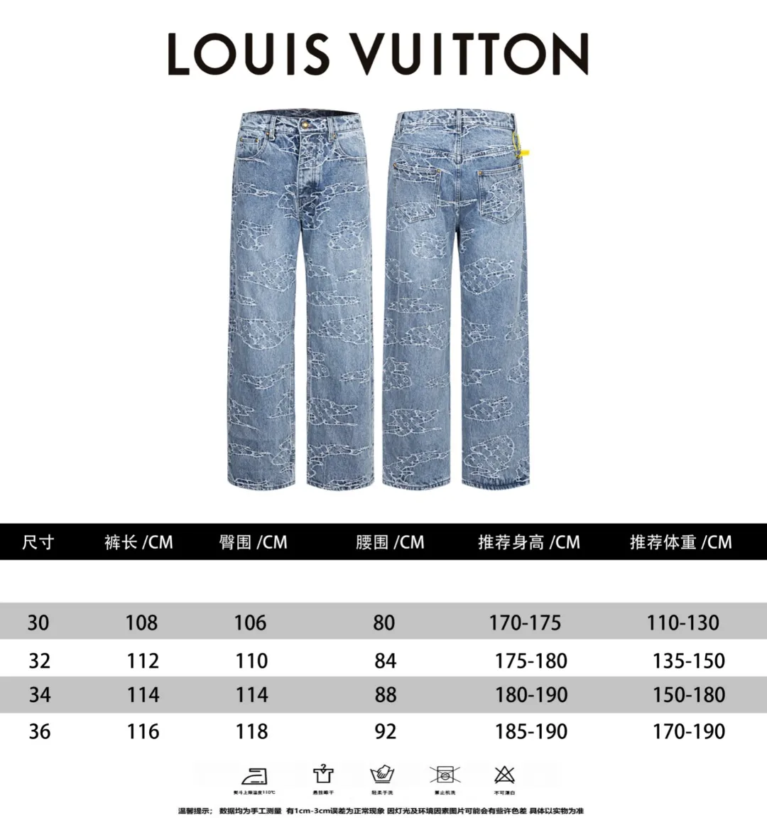We also offer wholesale the best quality and cheap replica Louis Vuitton LV Jeans items Gender UnisexSize 30, 32, 34, 36 online!