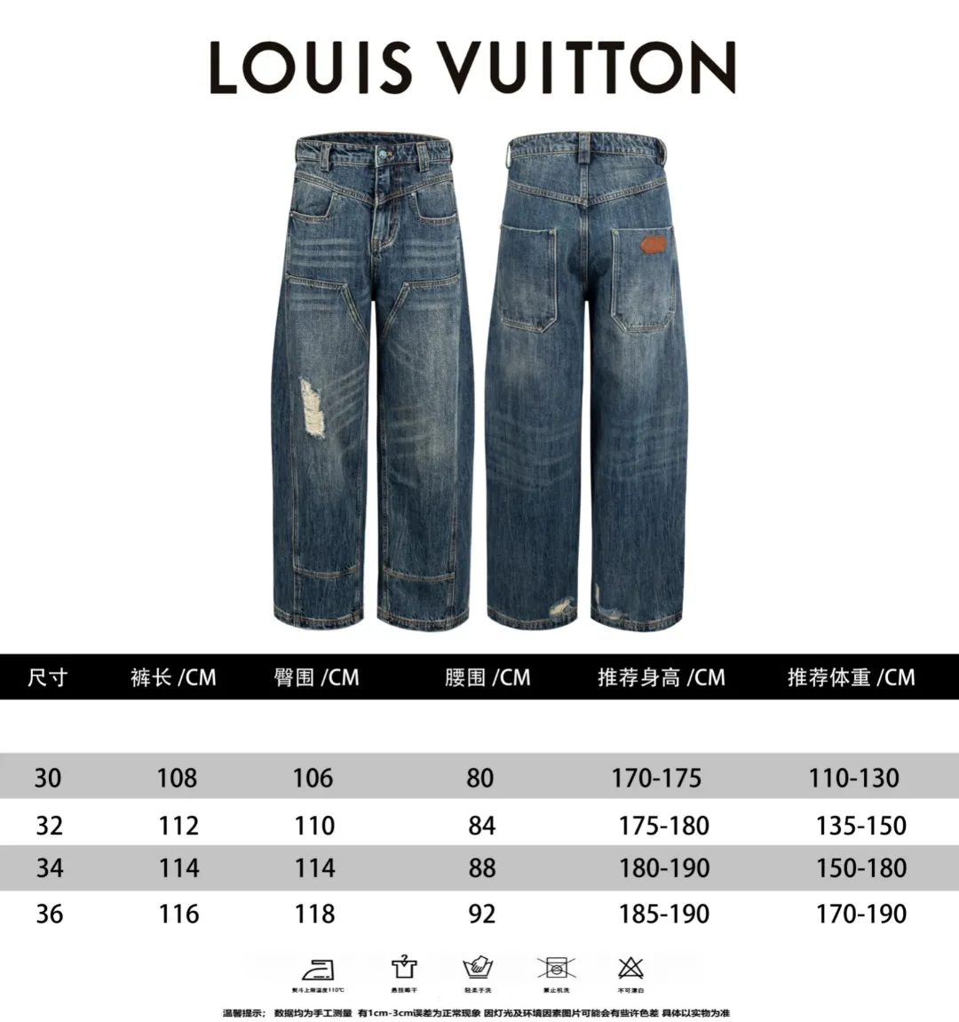 We also offer wholesale the best quality and cheap replica Louis Vuitton LV Jeans items Gender UnisexSize 30, 32, 34, 36 online!
