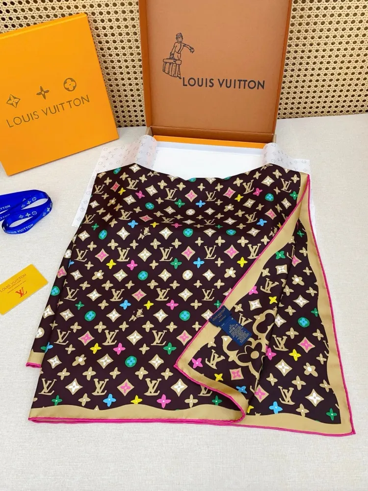 These Louis Vuitton Scarf are very easy to resell due to the low costand fast shipping. Wholesale new arrivals cheap quality fake Louis Vuitton Scarf enjoy free shipping and more discount with best quality! The hot on sale style Louis Vuitton Silk Squares #1423644.