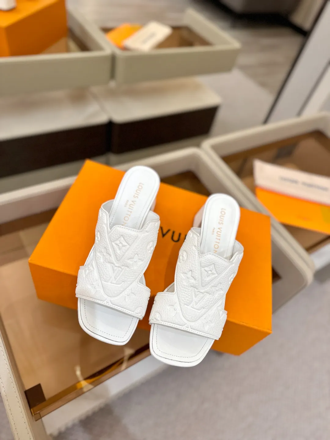 We also offer wholesale the best quality and cheap replica Louis Vuitton Slippers items Gender WomenSize US 5=EUR(35), US 5.5=EUR(36), US 6=EUR(37), US 7=EUR(38), US 8=EUR(39)Heels 5.5 CM online!