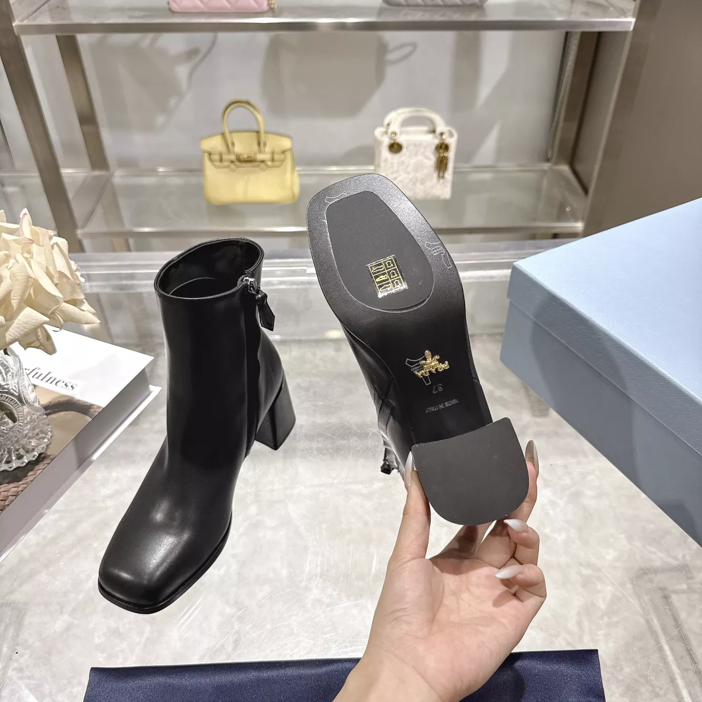 We also offer wholesale the best quality and cheap replica Prada Boots items Gender WomenSize US 5=EUR(35), US 5.5=EUR(36), US 6=EUR(37), US 7=EUR(38), US 8=EUR(39), US 8.5=EUR(40)Heels 6.5 CM online!