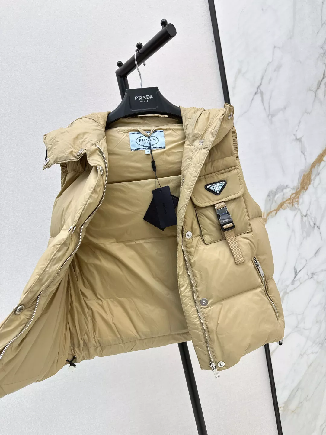 We also offer wholesale the best quality and cheap replica Prada Down Feather Coat items Sleeved SleevelessGender WomenSize S, M, L online!