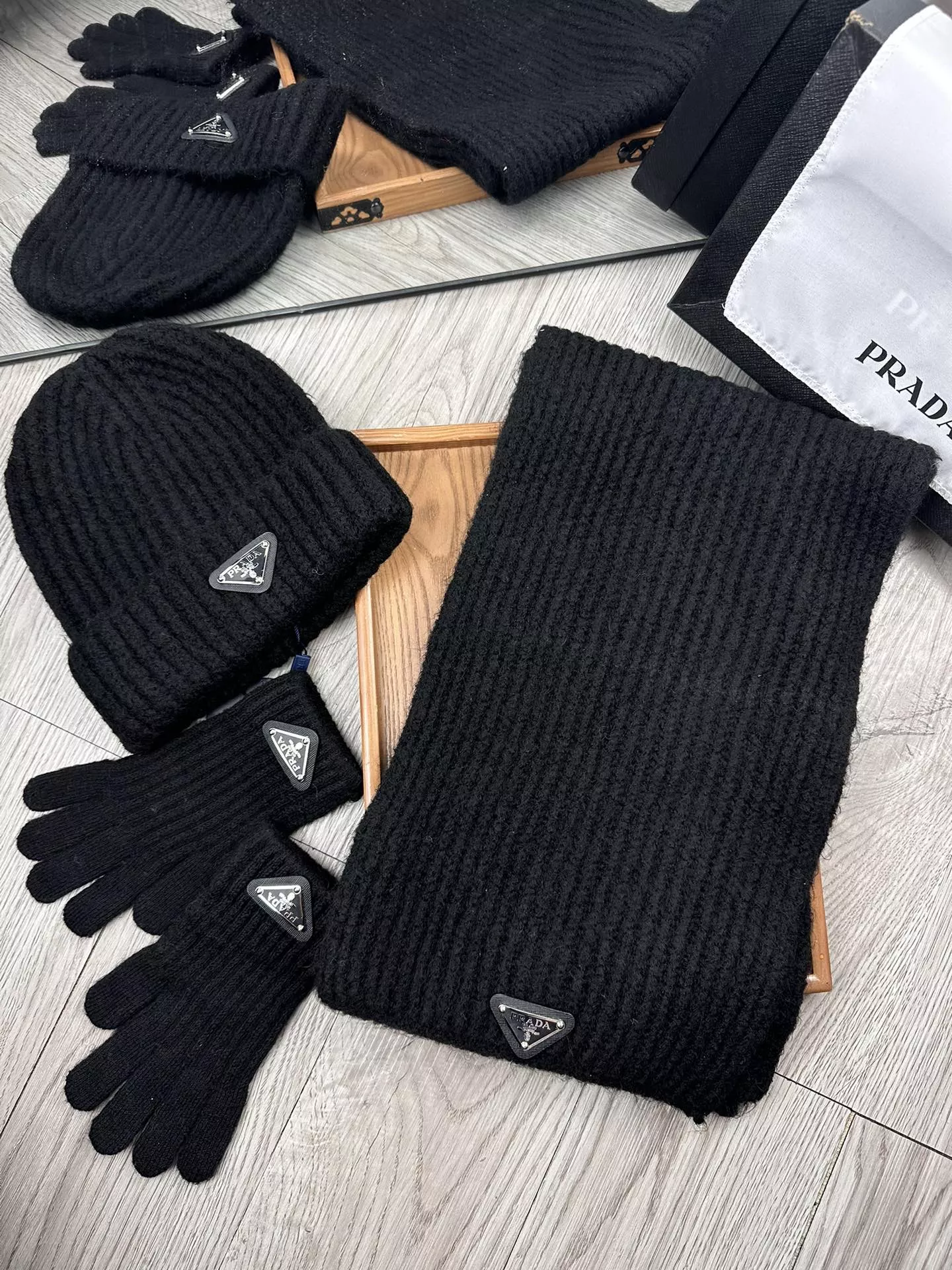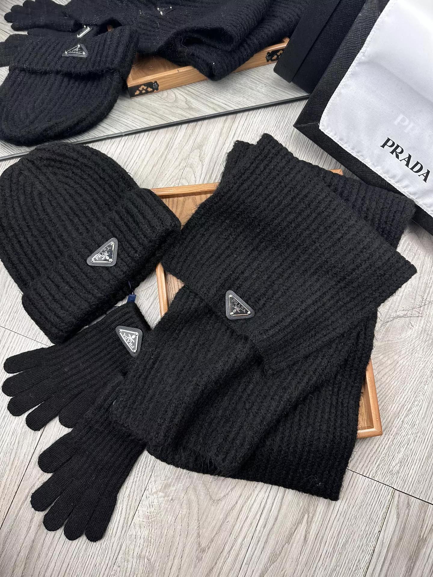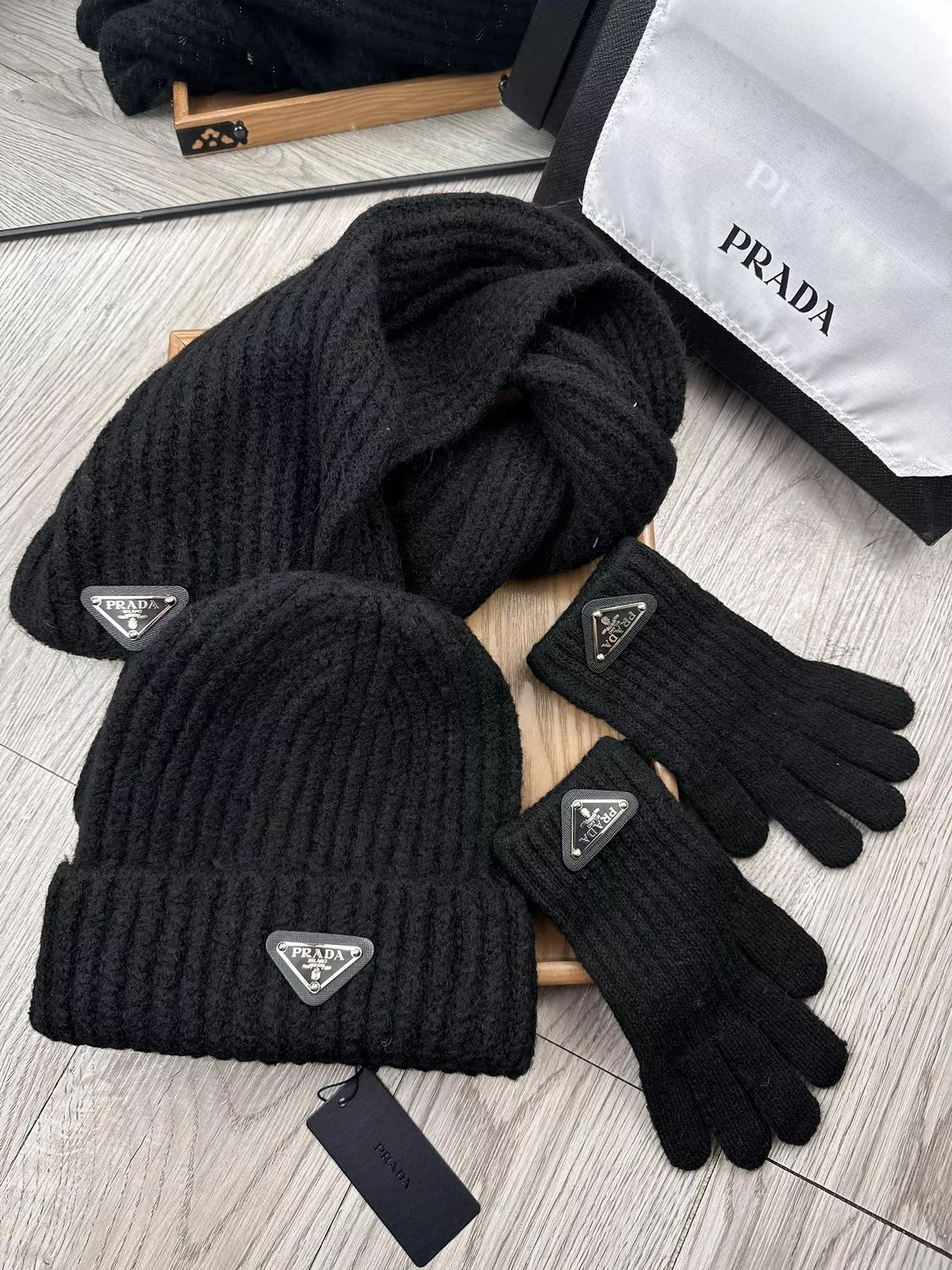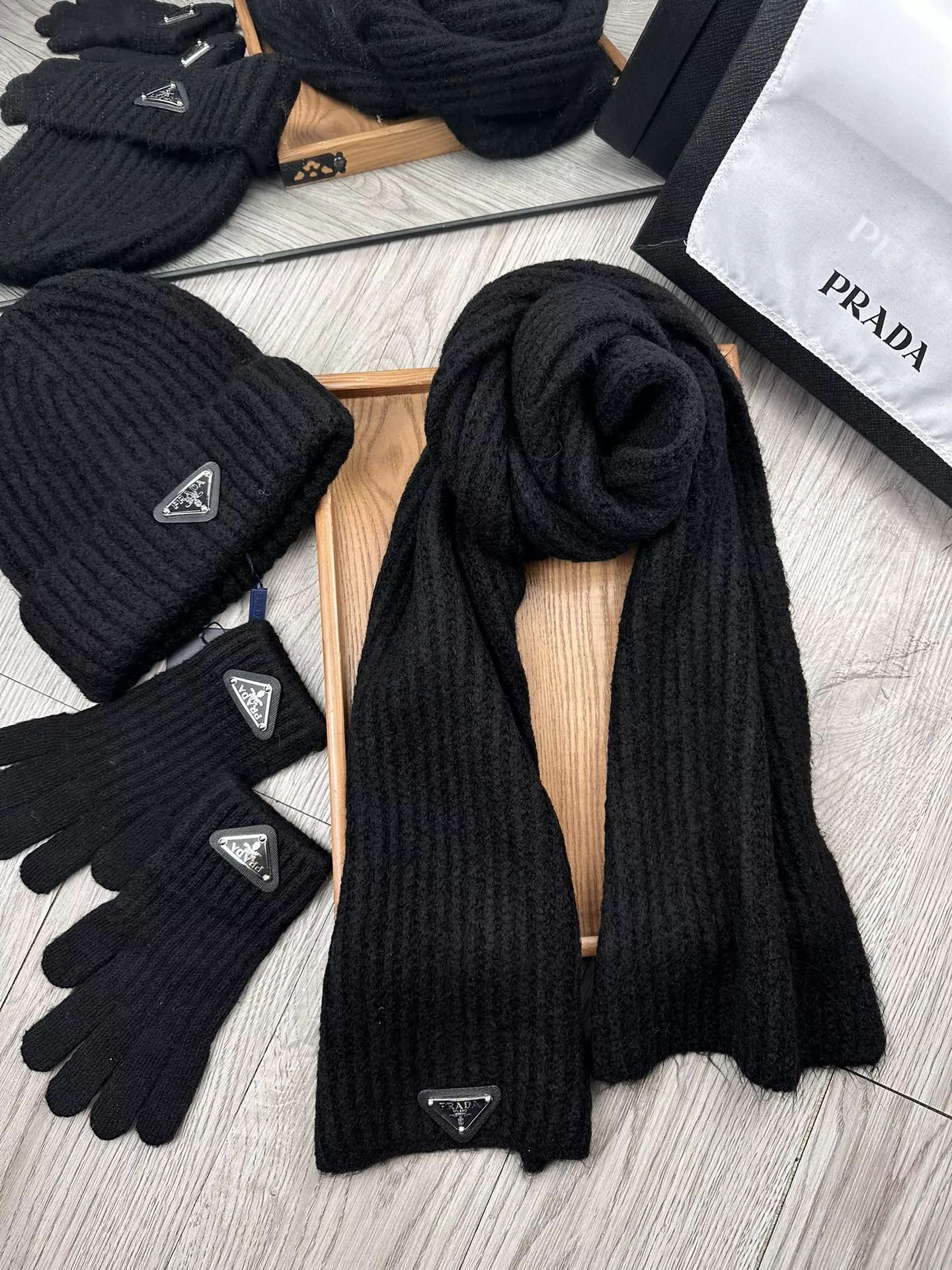 We also offer wholesale the best quality and cheap replica Prada Hat and Scarf and Glove Set items online!