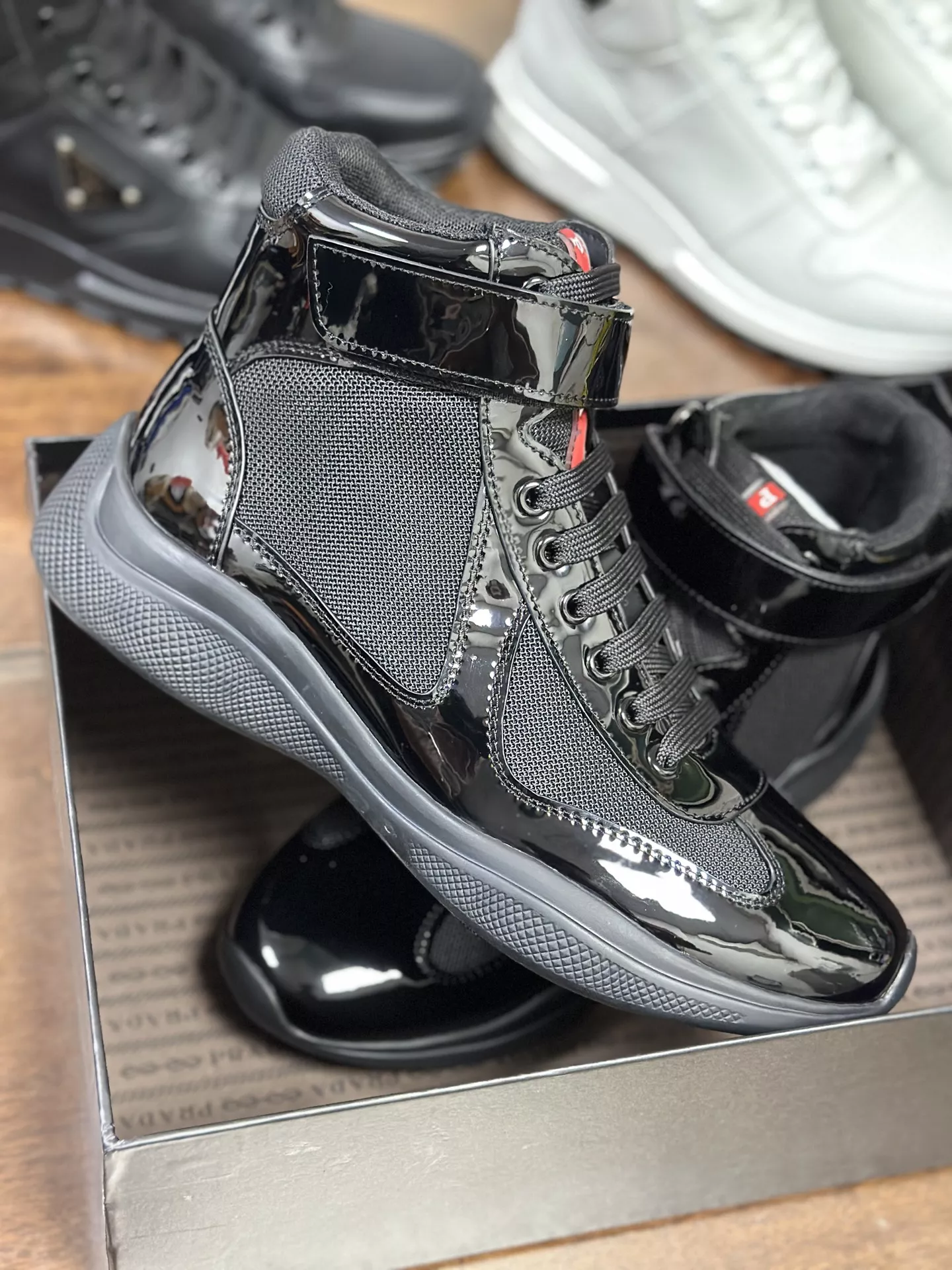 We also offer wholesale the best quality and cheap replica Prada High Top Shoes items Gender MenSize US 5=EUR(39), US 6=EUR(40), US 7=EUR(41), US 8=EUR(42), US 9=EUR(43), US 10=EUR(44) online!