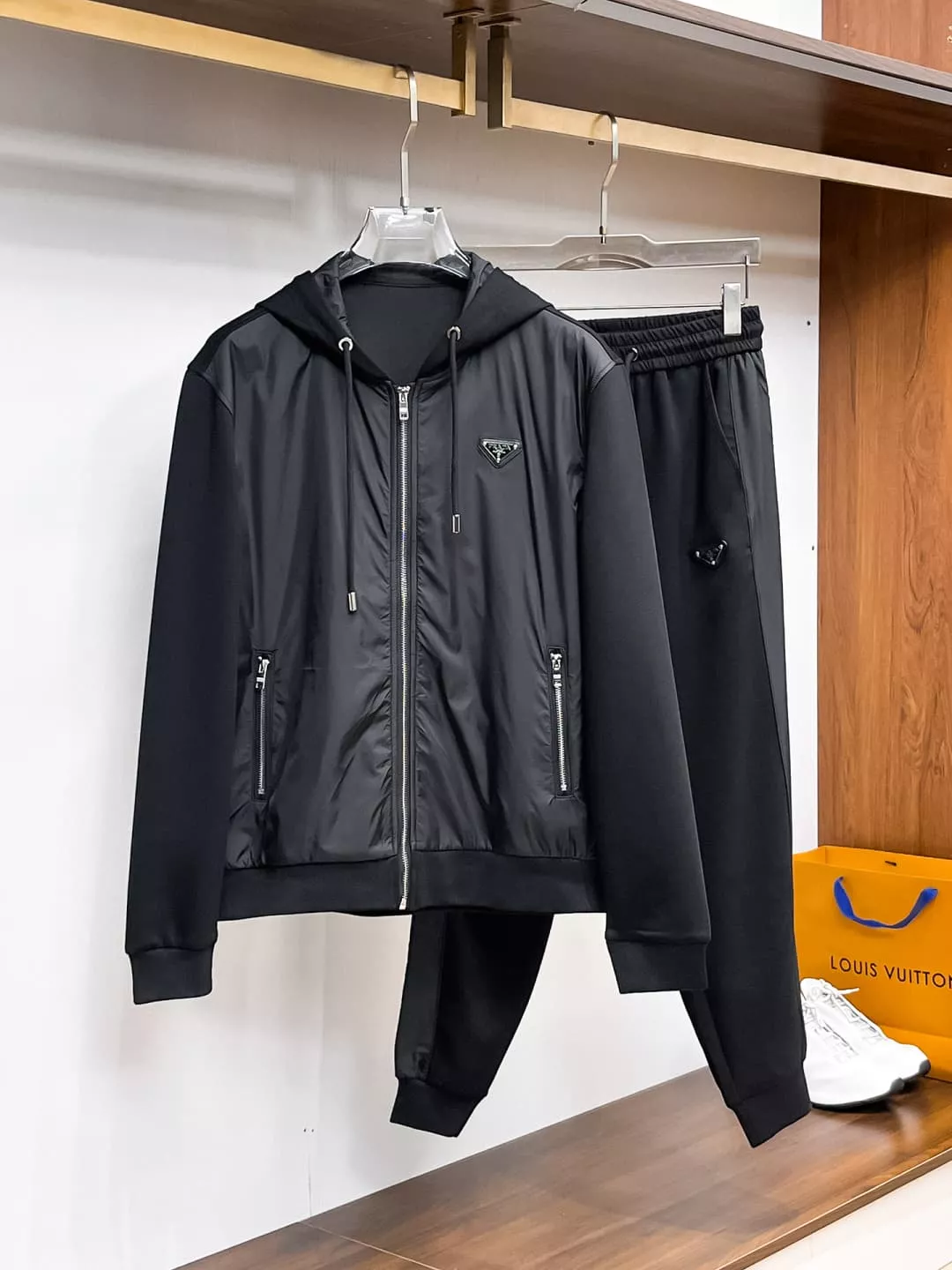 These Prada Tracksuits are very easy to resell due to the low costand fast shipping. Wholesale new arrivals cheap quality fake Prada Tracksuits enjoy free shipping and more discount with best quality! The hot on sale style Prada Tracksuits Long Sleeved For Men #1380410.