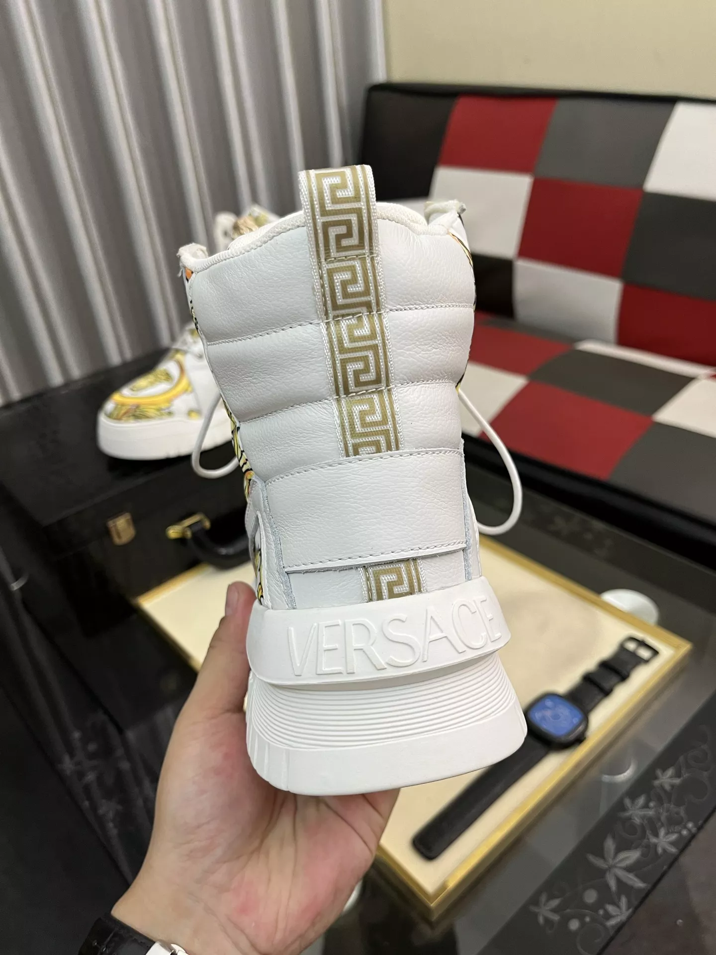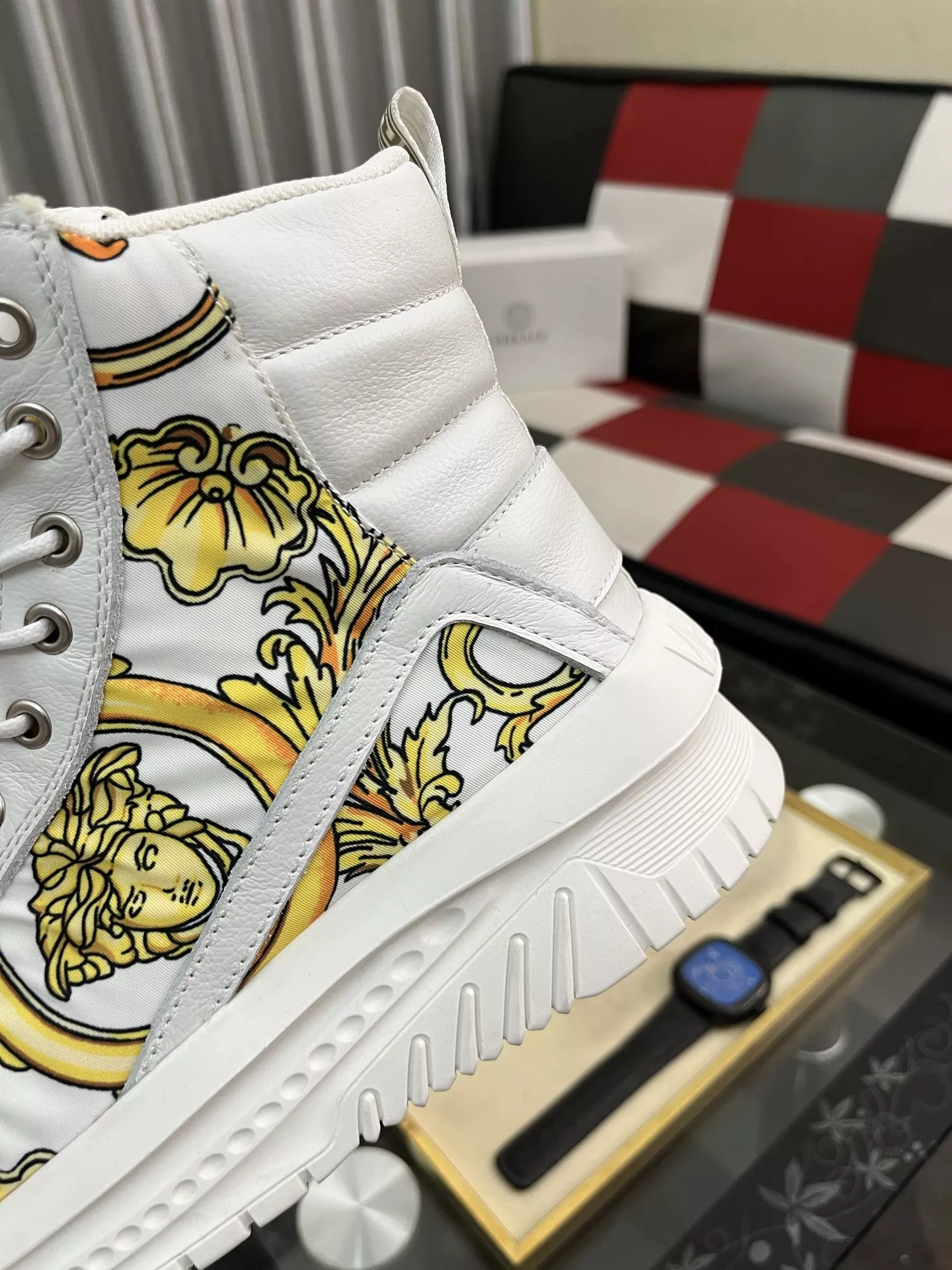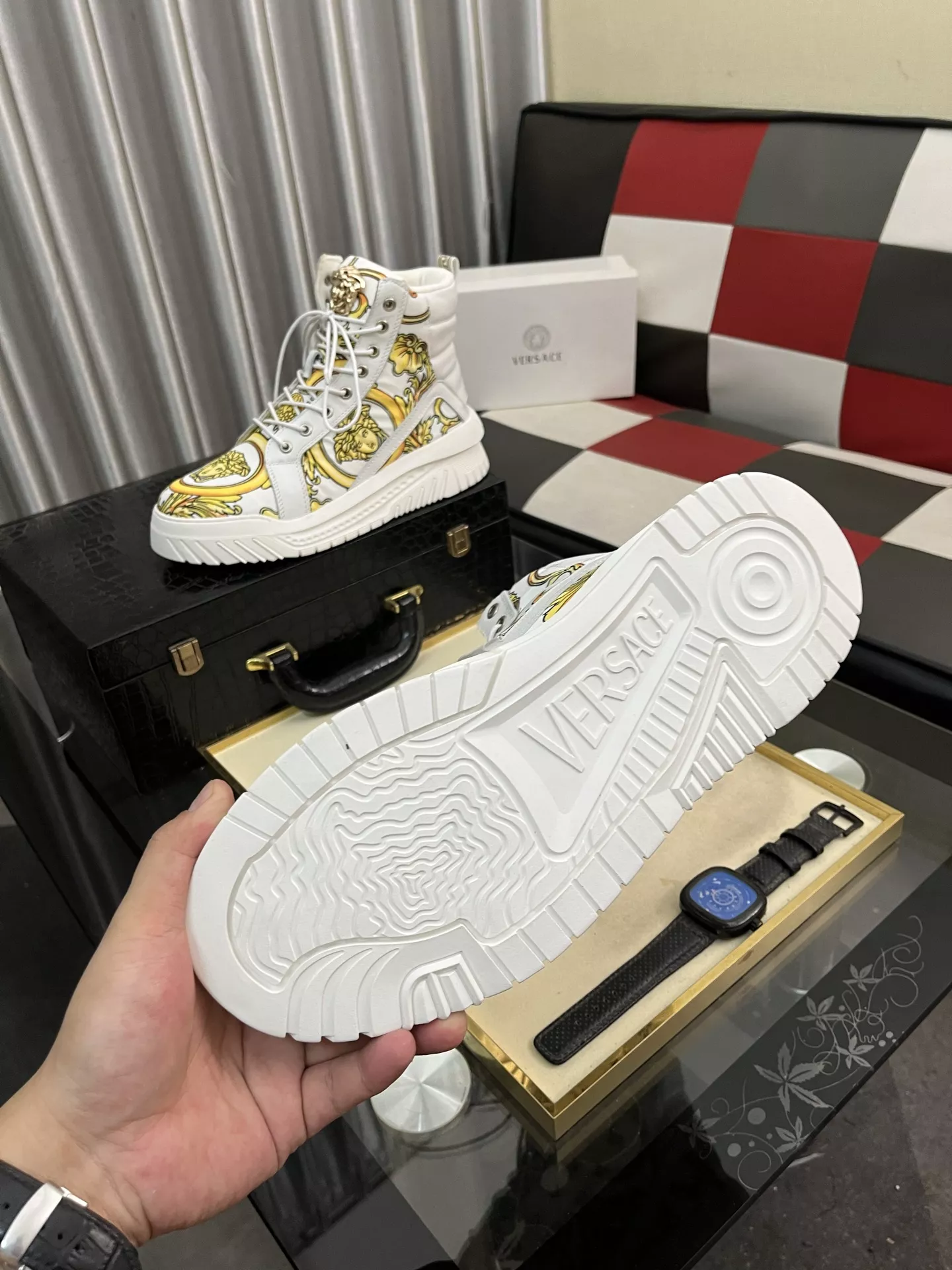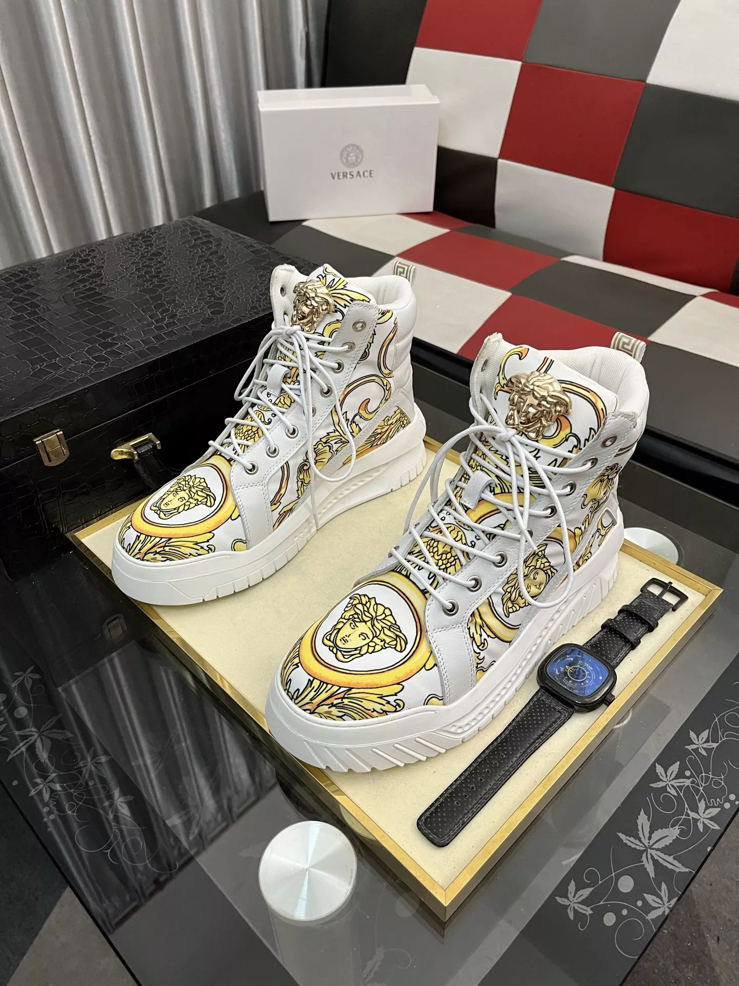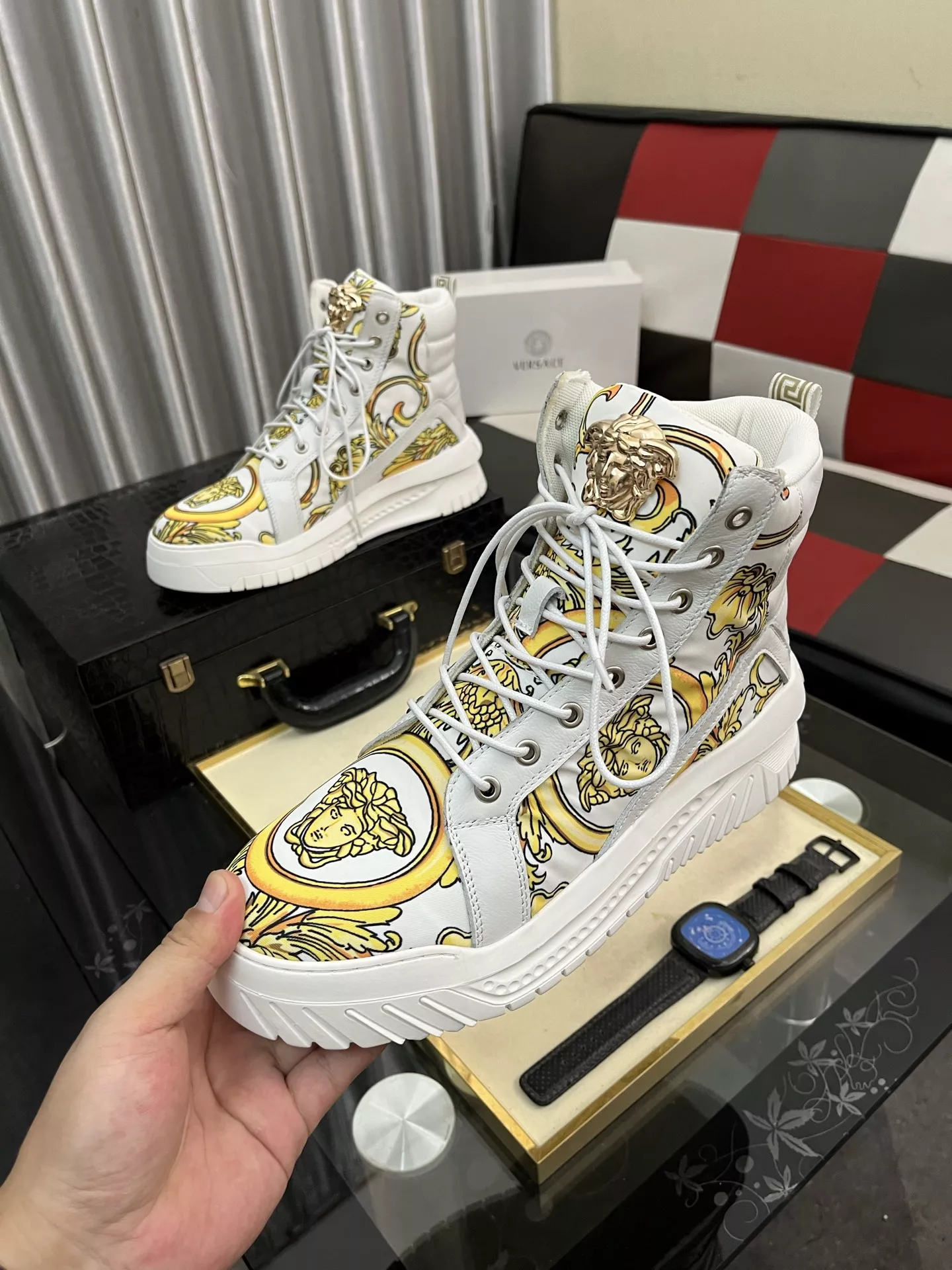 These Versace High Tops Shoes are very easy to resell due to the low costand fast shipping. Wholesale new arrivals cheap quality fake Versace High Tops Shoes enjoy free shipping and more discount with best quality! The hot on sale style Versace High Tops Shoes For Men #1380517.