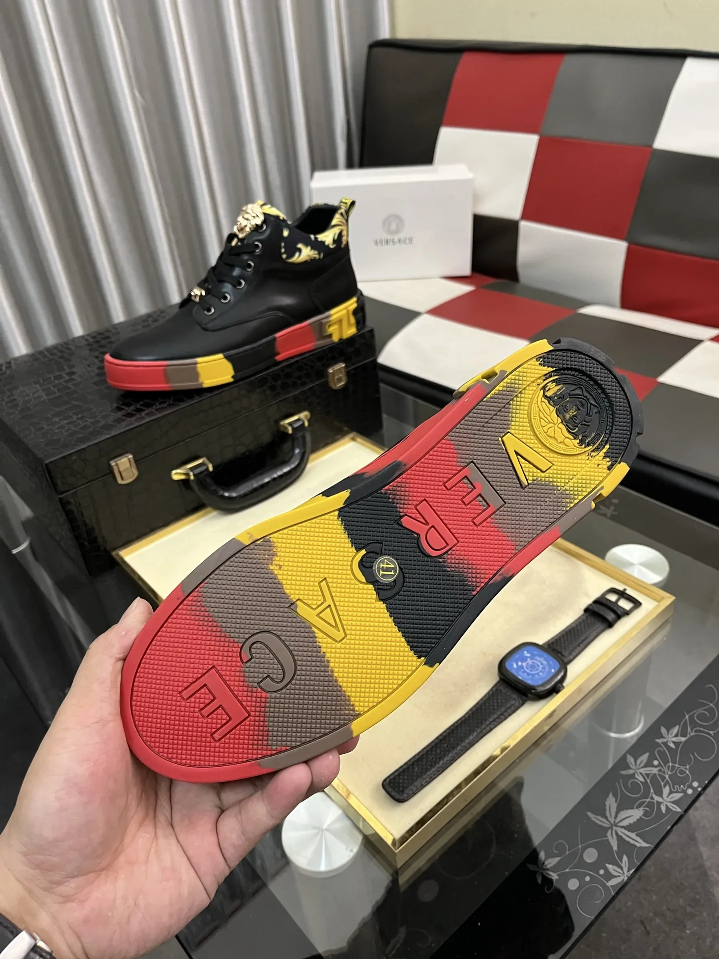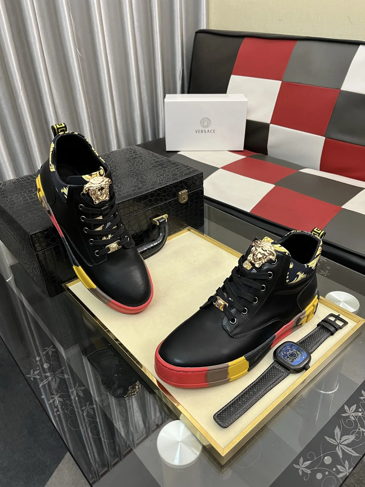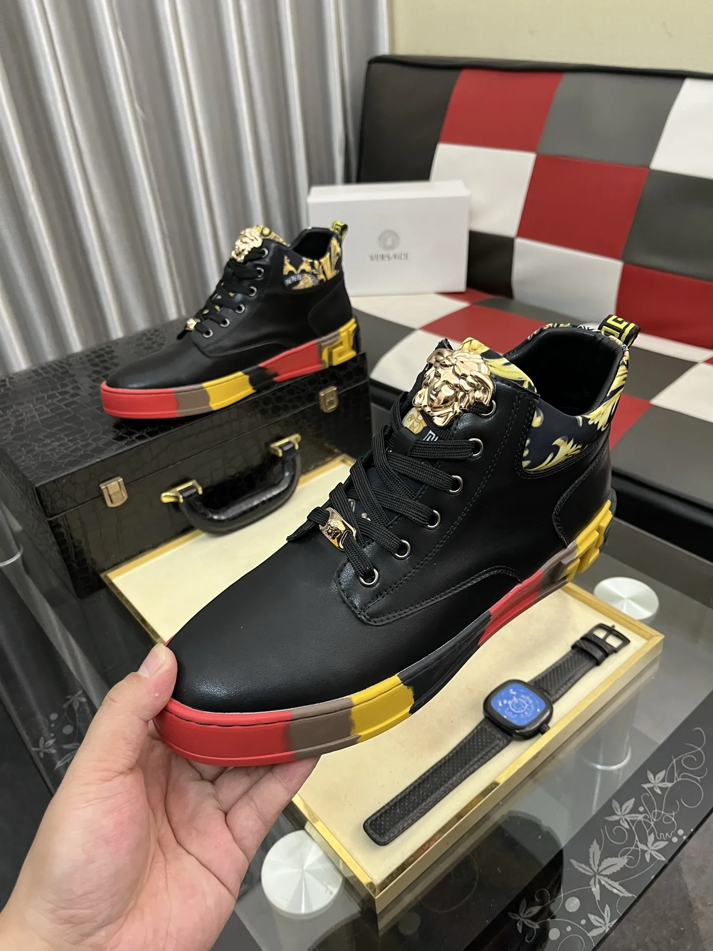 These Versace High Tops Shoes are very easy to resell due to the low costand fast shipping. Wholesale new arrivals cheap quality fake Versace High Tops Shoes enjoy free shipping and more discount with best quality! The hot on sale style Versace High Tops Shoes For Men #1408406.