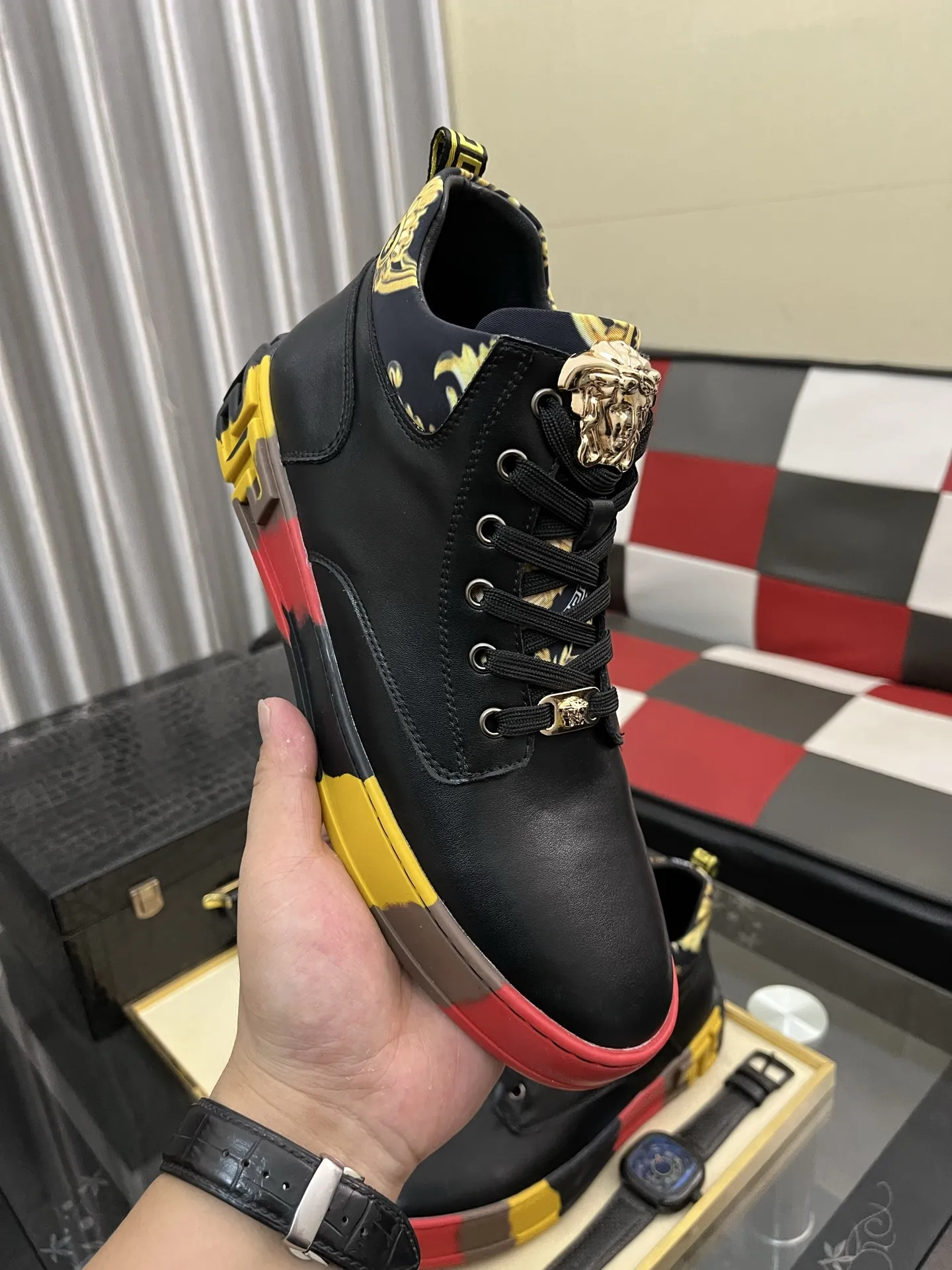 We also offer wholesale the best quality and cheap replica Versace High Tops Shoes items Gender MenSize US 4=EUR(38), US 5=EUR(39), US 6=EUR(40), US 7=EUR(41), US 8=EUR(42), US 9=EUR(43), US 10=EUR(44) online!