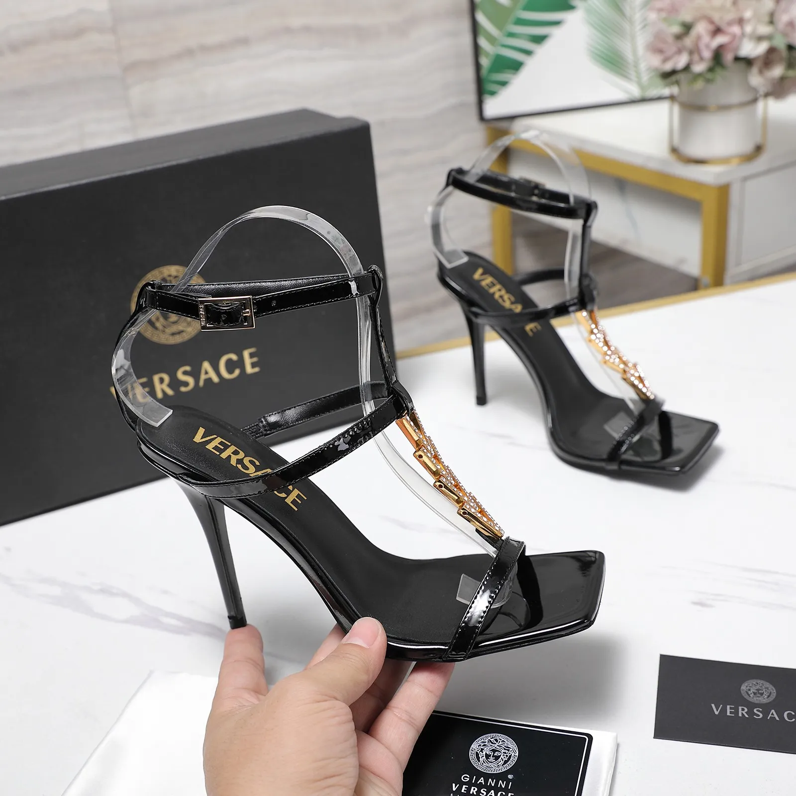 We also offer wholesale the best quality and cheap replica Versace Sandal items Gender WomenSize US 5=EUR(35), US 5.5=EUR(36), US 6=EUR(37), US 7=EUR(38), US 8=EUR(39), US 8.5=EUR(40)Heels 10.5 CM online!