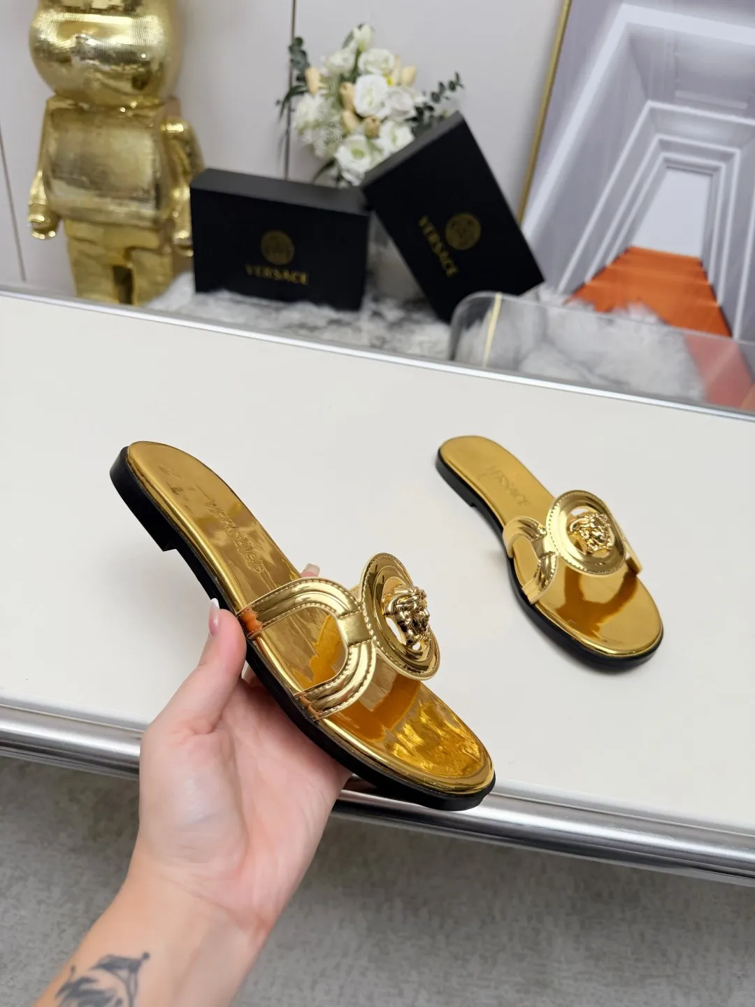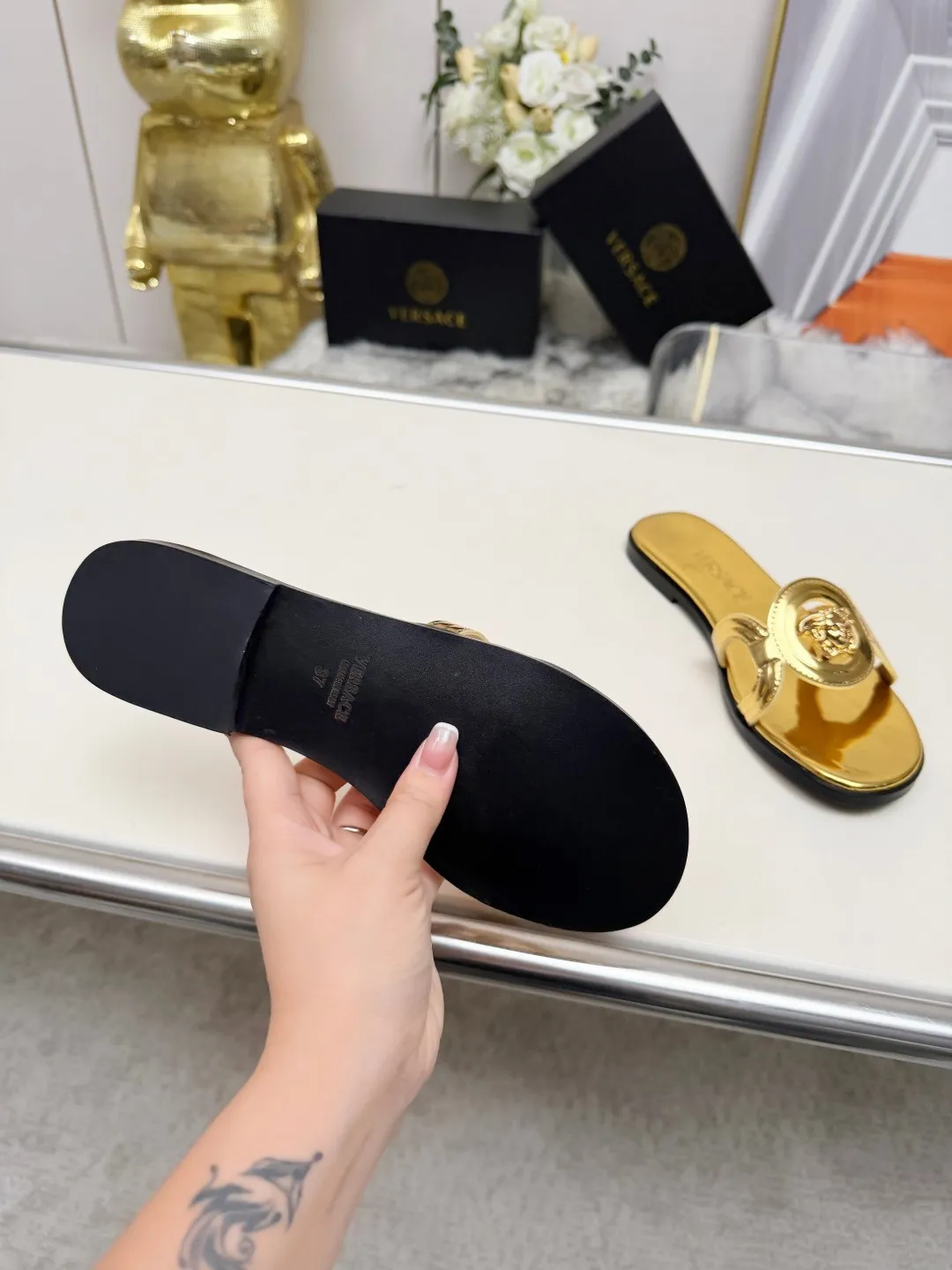 We also offer wholesale the best quality and cheap replica Versace Slippers items Gender WomenSize US 5=EUR(35), US 5.5=EUR(36), US 6=EUR(37), US 7=EUR(38), US 8=EUR(39), US 8.5=EUR(40) online!