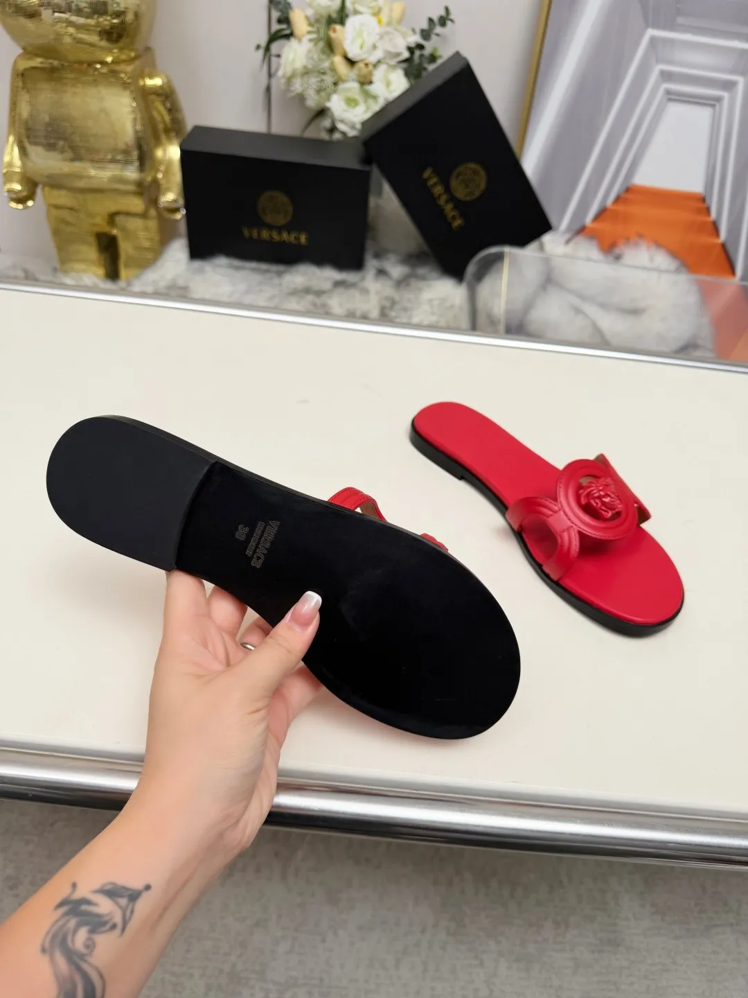We also offer wholesale the best quality and cheap replica Versace Slippers items Gender WomenSize US 5=EUR(35), US 5.5=EUR(36), US 6=EUR(37), US 7=EUR(38), US 8=EUR(39), US 8.5=EUR(40) online!