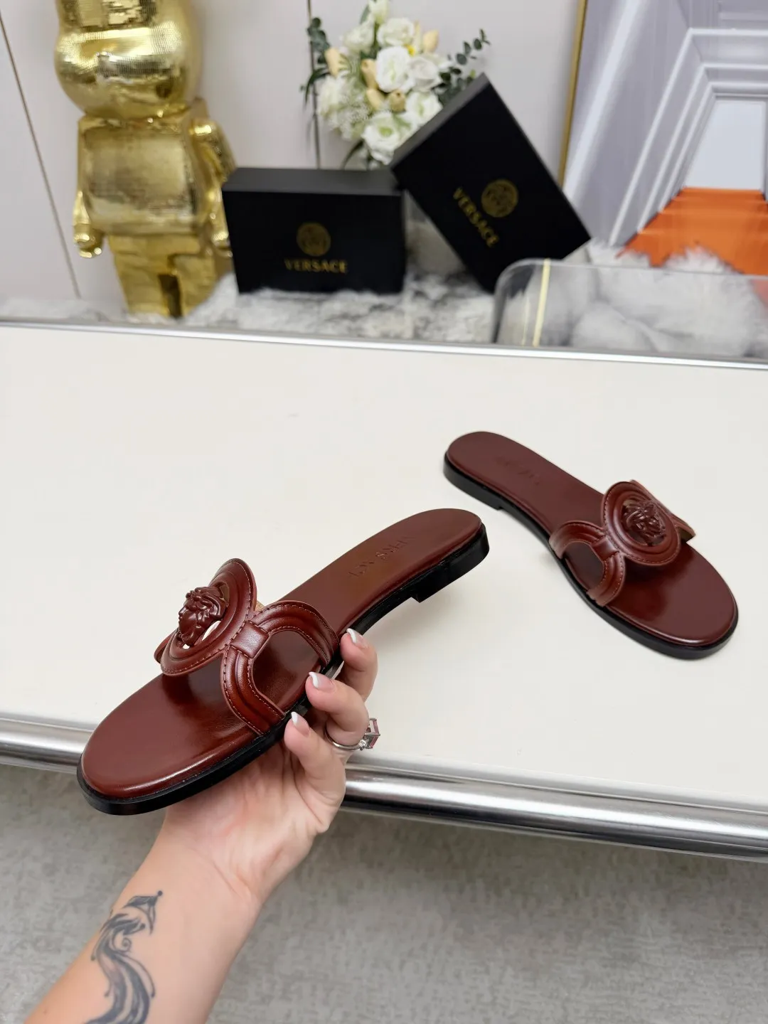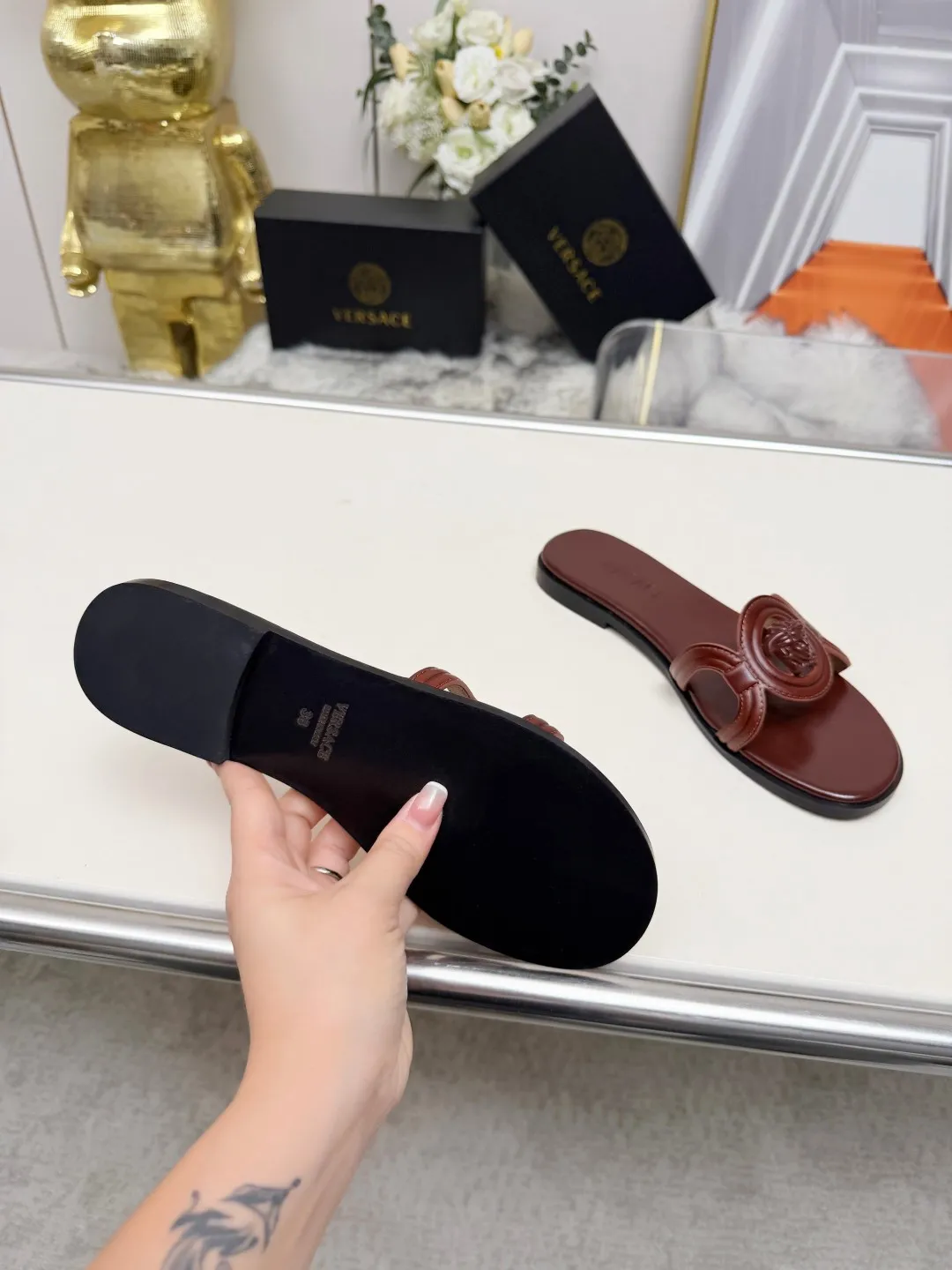 We also offer wholesale the best quality and cheap replica Versace Slippers items Gender WomenSize US 5=EUR(35), US 5.5=EUR(36), US 6=EUR(37), US 7=EUR(38), US 8=EUR(39), US 8.5=EUR(40) online!