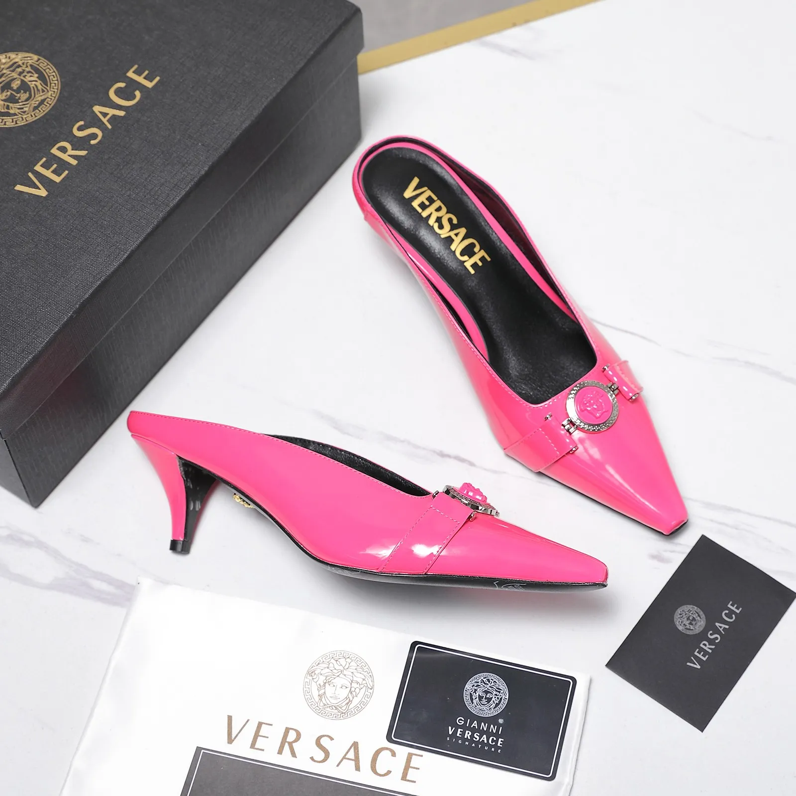 We also offer wholesale the best quality and cheap replica Versace Slippers items Gender WomenSize US 5=EUR(35), US 5.5=EUR(36), US 6=EUR(37), US 7=EUR(38), US 8=EUR(39), US 8.5=EUR(40)Heels 5.5 CM online!