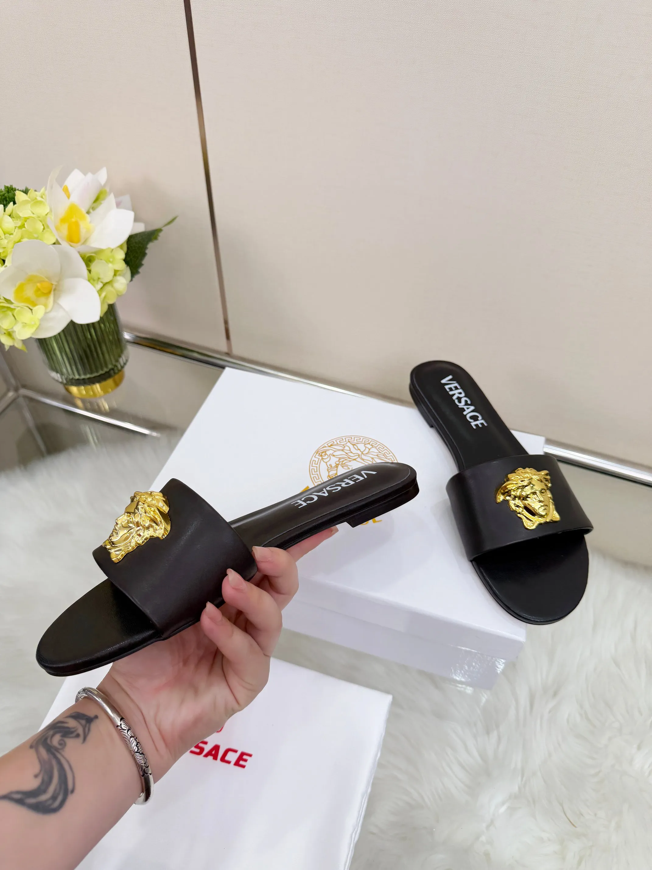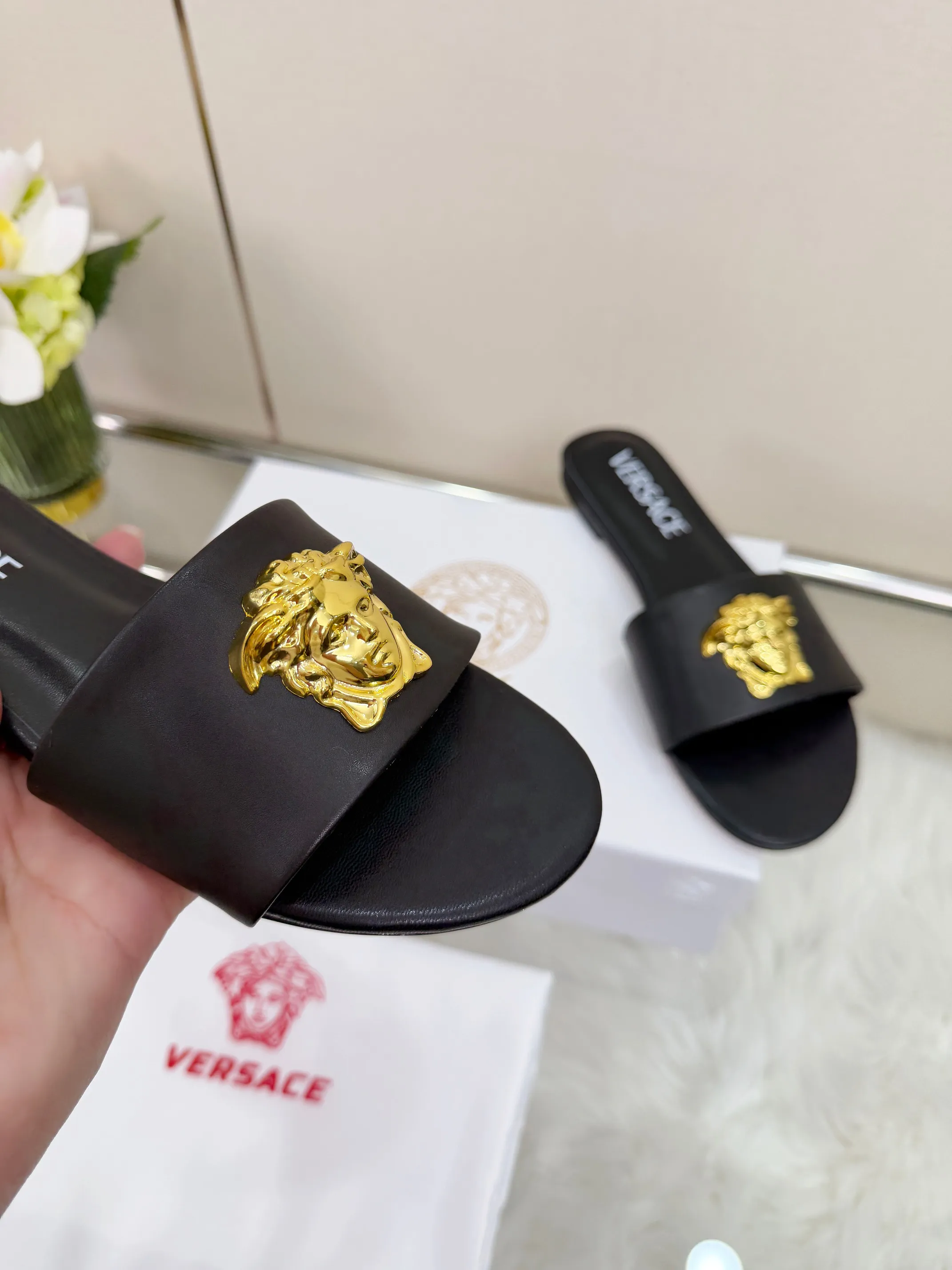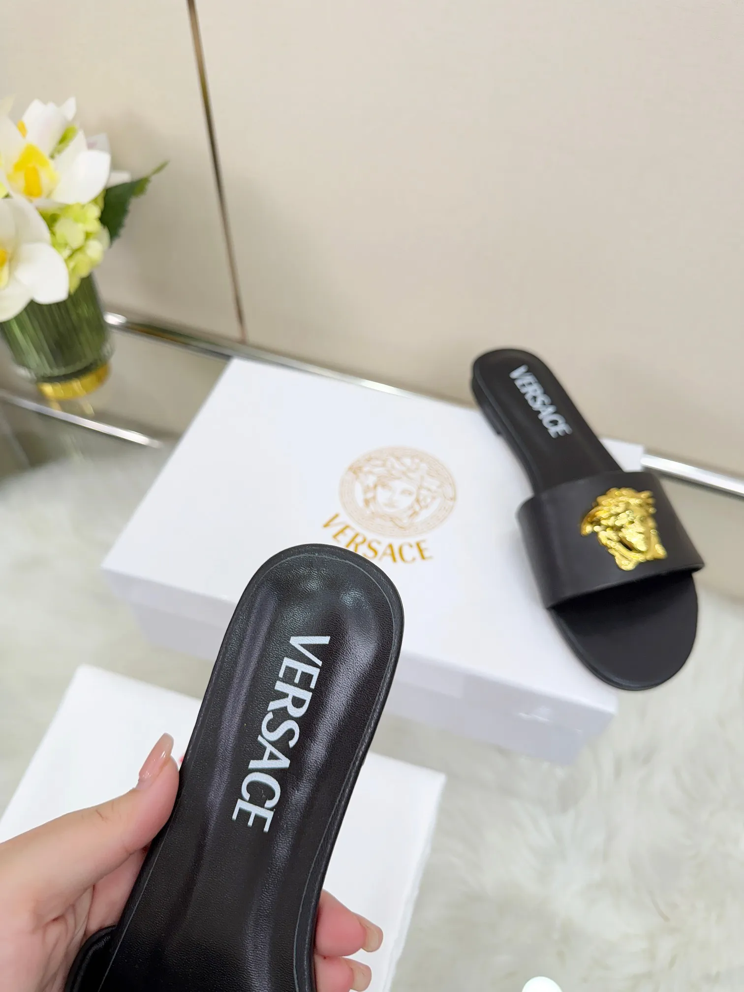 We also offer wholesale the best quality and cheap replica Versace Slippers items Gender WomenSize US 5=EUR(35), US 5.5=EUR(36), US 6=EUR(37), US 7=EUR(38), US 8=EUR(39), US 8.5=EUR(40), US 9.5=EUR(41), US 10=EUR(42) online!