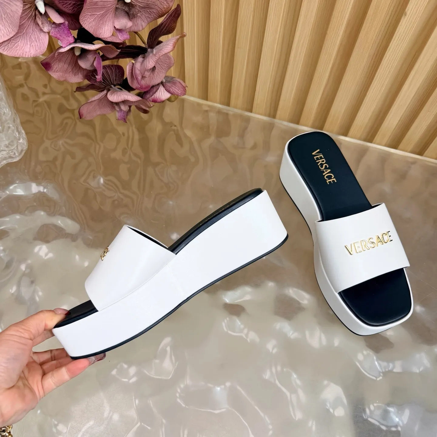 We also offer wholesale the best quality and cheap replica Versace Slippers items Gender WomenSize US 5=EUR(35), US 5.5=EUR(36), US 6=EUR(37), US 7=EUR(38), US 8=EUR(39)Heels 6 CM online!