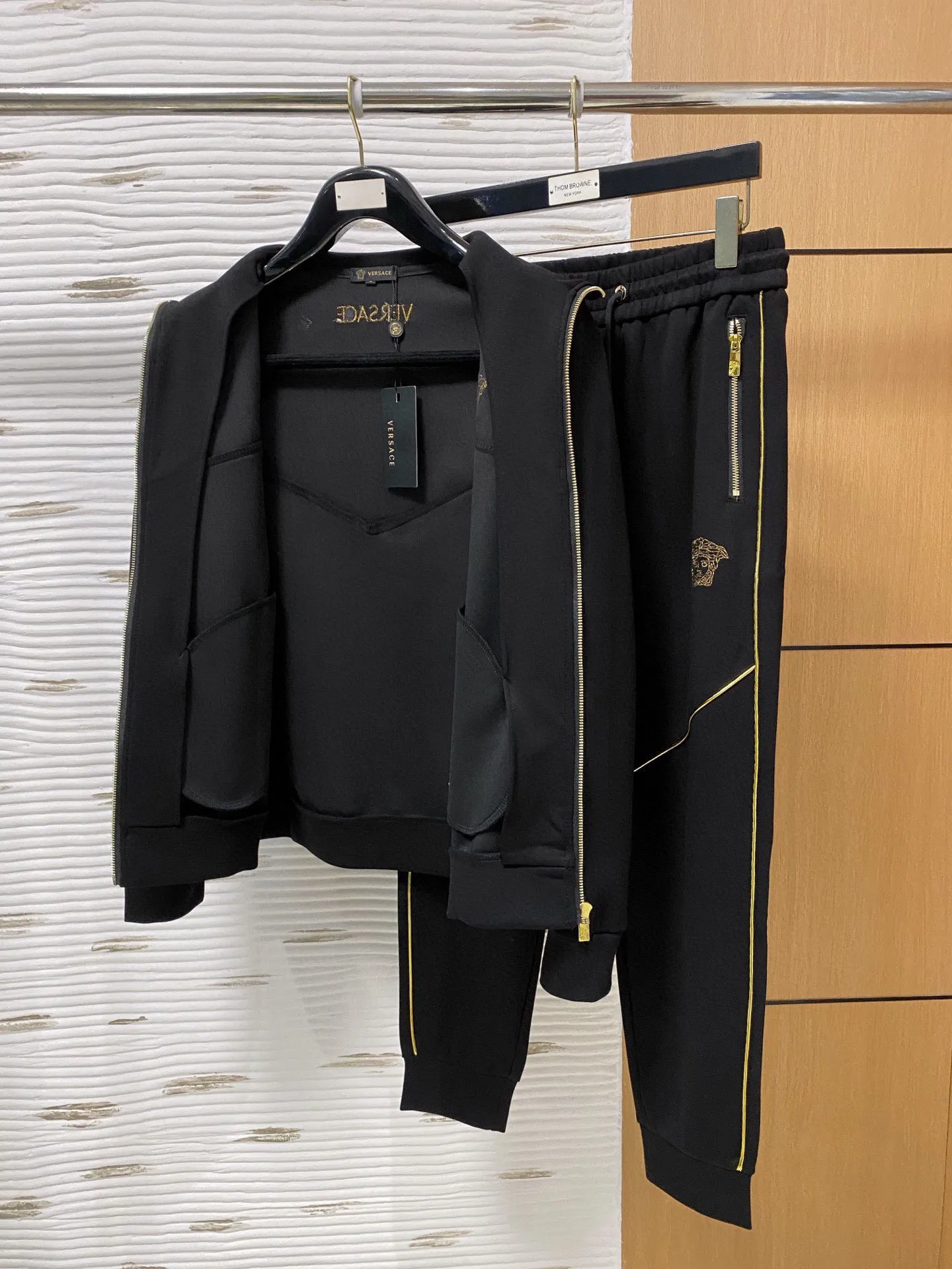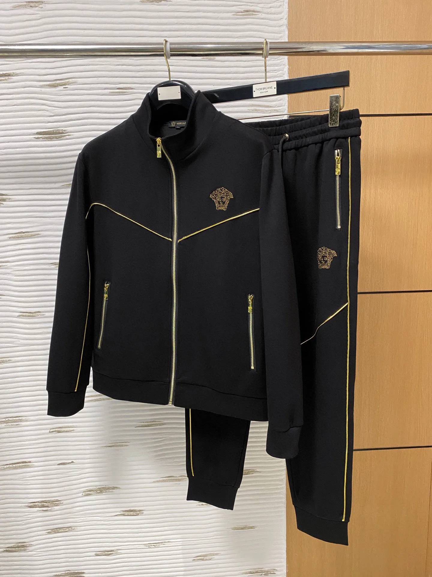 These Versace Tracksuits are very easy to resell due to the low costand fast shipping. Wholesale new arrivals cheap quality fake Versace Tracksuits enjoy free shipping and more discount with best quality! The hot on sale style Versace Tracksuits Long Sleeved For Men #1393304.